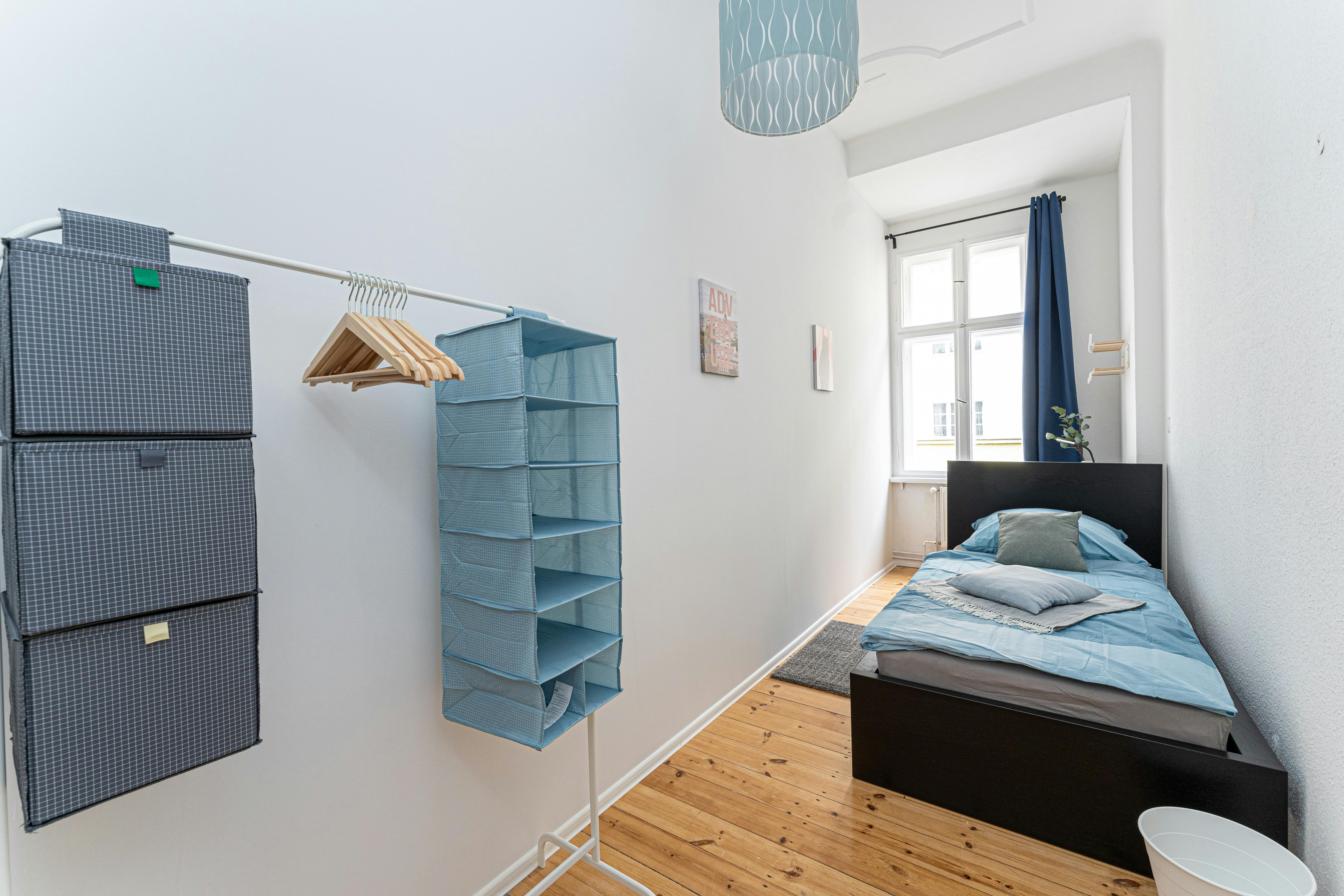 Room 3 Hi Guys, this is a fully furnished room in a shared flat. The room has a comfortable bed, a desk with chair and a wardrobe for your clothes. Also the common areas are fully equipped with washing machine, cooking equipment and all you need for your daily living. Anmeldung/Registration is possible. The monthly rent price is all inclusive (rent + heating + water + Internet + GEZ/german TV license fee). For the move in dates we have only the 1st or the 16th of each month a tenant can move in. In specific cases we have a flexible move in date, but this needs to discuss in our messages. plus the deposit of 950€, which needs to be payed before move in via bank transfer in a single payment....