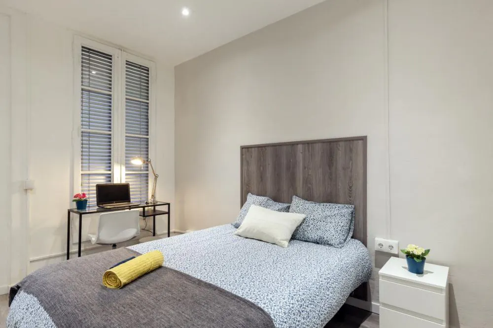 Please keep in mind that the amount requested in the "other additional costs" field refers to tenant assistance coverage. ⭐️ DISCOUNT! If you book accommodation now and the check-out date is before August, you will have access to free tenant assistance coverage. For bookings ending in August 2024 and later, this service will be charged at one month's rent. Apartment in trafalgar street in Barcelona *Apartment with 7 bedrooms* and 2 bathrooms, located on *Trafalgar Street* , very close to Plaça Catalunya and the Arc de Triumf. You will be a step away from the Palau de la Musica, the Gothic Quarter and the Ciutadella Park and you will find numerous bars, squares, cafes, supermarkets, and pharmacies. If you are looking for a busy neighborhood in the streets, this is your perfect accommodation in Barcelona! This property has heated rooms with its own lock for added privacy. The kitchen comes fully equipped with two refrigerators, a microwave, washing machine, and oven. Everything so that you do not lack anything in your first days of change! This accommodation is ideal for international youth who are studying or working and want to live one of their best experiences in a new city. Enjoy your Barcelona experience with *(hidden)* ! A neighborhood with a lot of activity in its streets, constant flow of people and vehicles with and comfortable squares to take rest under the trees, consists of cafeterias, bars, supermarkets, pharmacies. Metro line L1 and L4-Red and Yellow Just 5 minutes walk from metro L1, L3 Plaza Catalunya and Ferrocarril. Within walking distance we find the Palau de la Musica, Gothic Quarter, Cathedral, Arc del Triumph, Ciutadella Park, estación del norte. - Don't smoke - Pets are not allowed - Parties are forbidden - Take out the trash daily - Short-term visits are allowed - (hidden) informs that in this flat a device has been installed in order to allow the monitoring of the noise level (decibels) 24 hours a day. The system emits an alert whenever the sound level exceeds the maximum allowed by the Community of Barcelona, mainly between 11pm and 6am. Room in the heart of Barcelona *Room in a central apartment in Trafalgar street*. The room is furnished with a single bed, desk, chair, table lamp, single wardrobe and bedside table. In addition, it has an interior window, heating and a lock on your door for greater privacy. An ideal room for *international youth* ! * Bedding is not included, only mattress cover is provided...