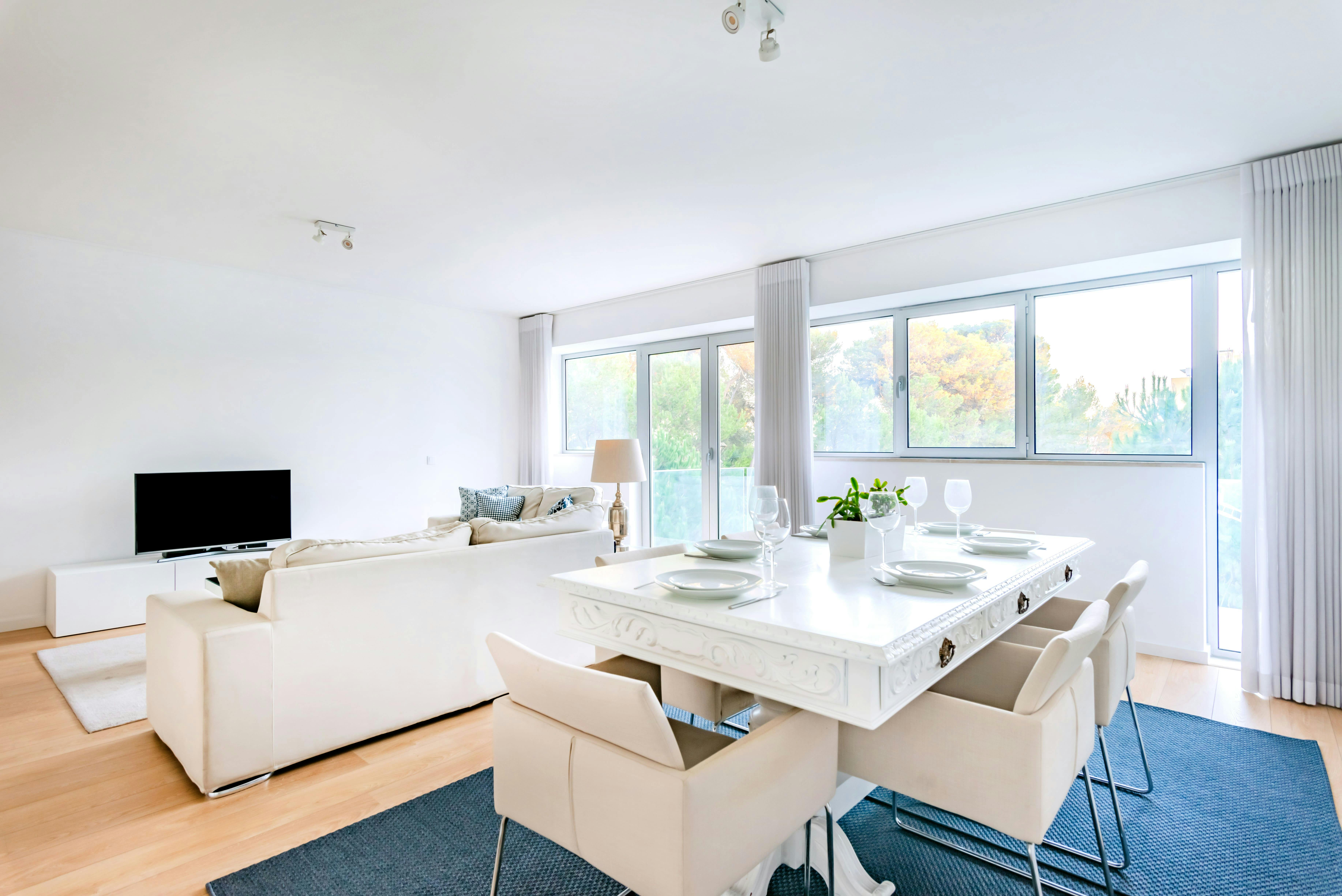 A high standard three bedroom, three bathroom apartment, inserted in a luxury condominium, with swimming pool and a few meters from Santo Amaro de Oeiras beach. The apartment is only 15 minutes by train from Lisbon's city center, making it an ideal option for family vacations or group getaways. It is the perfect atmosphere for a beach-side vacation with excellent amenities and superior comfort. → Building The apartment is located on the 3rd floor (with elevator) of a modern building in a private condominium in Oeiras. The condominium offers all the security and privacy you need to fully enjoy your vacation. → Bedrooms The apartment has three bedrooms, two with a double bed and one with two single beds. One of them is a suite. → Living/Dining Room The living room has a flat screen box TV, a comfortable sofa, dining table for 6, plenty of light and a balcony. → Bathrooms The apartment has three bathrooms, two with shower and one with bathtub. → Kitchen The kitchen is fully equipped with refrigerator, microwave, toaster, washer&dryer and coffee maker (coffee not included)...