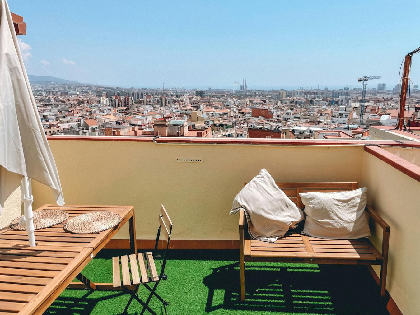 MAGNIFICENT one bedroom apartment in Guinardo, one of the nicest parts of Barcelona. The apartment consists of separate bedroom, living room, private bathrooms and TWO PRIVATE TERRACES with amazing views. Fully equipped with all electric appliances, furniture and amenities for most comfortable stay. We are located in a quiet neighborhood, close to metro and many bus stops. The building is newly renovated with brand new elevator....
