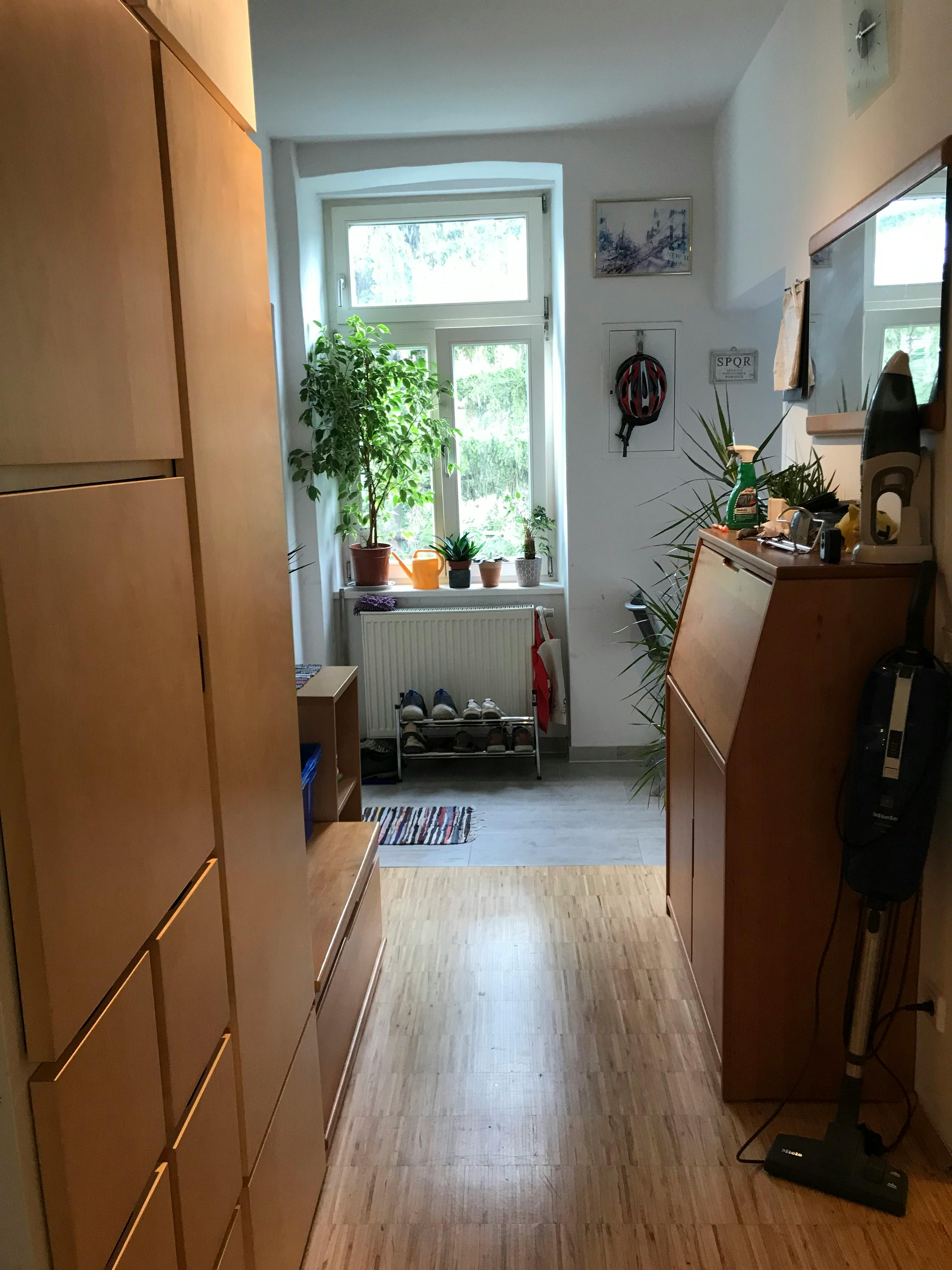 sorry for the somewhat miserable resonse rate, it mostly happened during the last time renting out when I was already abroad. Please be assured that I am reading your messages as soon as possible! The apartment is in a great location in the 18th district, right around the corner from Kutschkermarkt. It's especially ideal for students since the university isn't far away. It takes just about 10 minutes by bike and the tram around the corner takes you directly to the main uni in the same amount of time. You could even walk to the university if you felt like it; would take roughly 25 minutes. The apartment is renovated and on the 2nd floor of an old building with nearly 3-meter-high ceilings. No worries about parking your bike. The kitchen window looks out onto a green courtyard and faces east, so lots of morning sun. The bedroom window faces the quiet Theresiengasse and is west-facing, meaning tons of sunshine from noon till evening. The U6 station Währinger Straße/Volksoper is also close by. Shops and green spaces are right around the corner. The apartment is fully furnished and I've even given it a big clean :) I've also got some plants in the apartment, all succulents or indoor palms. They don't need much water and create, in my opinion, a nice vibe. Lots of cool features you can use, including a bathroom scale, 47-inch LED TV, whiteboard, a huge daylight lamp, ste(hidden)ystem, two large computer monitors with keyboard and mouse, paper shredder, printer, vacuum cleaner + an extra cordless handheld vacuum, huge desk with a lamp, and lots of office supplies, etc. The kitchen is equipped with a stove, microwave with grill function, toaster, egg cooker, rice cooker, kettle, Nespresso coffee machine, a huge fridge with freezer, an extra freezer, sandwich maker, and a dishwasher! High-speed Wi-Fi and a TV connection with over 50 channels are also included. Feel free to message me with any questions. Cheers! UPDATE: If a washing machine is a must-have, we can probably sort something out in that regard. Comparing with similar apartments, I've noticed mine seems to be quite a steal. It's the first time I'm renting it out... and that's fine by me. My main goal is to find someone I'm happy to entrust the place to for a few months so it's not just sitting empty and useless. For that reason, I'd encourage anyone who reaches out to introduce themselves thoroughly so I can get a decent idea of who you are. IN GERMAN: Die Wohnung befindet sich in guter Lage im 18. Bezirk direkt ums Eck des Kutschkermarktes. Besonders für StudentInnen ideal da es bis zur Uni nicht weit ist. Mit dem Fahrrad knapp 10 Minuten und auch die Straßenbahn ums Eck fährt direkt bis zur Hauptuni, in ebenfalls knapp 10 Minuten. Man könnte sogar zu Fuß zur Uni gehen wenn man denn wollte, würde knapp 25 Minuten dauern Die Wohnung ist saniert und befindet sich im 2. Stock eine Altbaus mit knapp 3 Meter Deckenhöhe. Fahrräder können problemlos abgestellt werden. Fenster in der Küche mit Blick in den begrünten Innenhof, Ostausrichtung, viel Sonne in der Früh, Fenster im Schlafzimmer in die wenig befahrene Theresiengasse mit Westausrichtung, d.h. sehr viel Sonneschein von Mittags bis Abends. Ebenfalls nicht weit ist die U6 Station Währinger Straße/Volksoper. Geschäfte und Grünflächen sind auch unmittelbar in der Nähe. Die Wohnung ist komplett möbliert und extra von mir im großen Stil noch einmal geputzt worden :) Ebenso hab ich einige Pflanzen in der Wohnung die allesamt Sukkulenten oder Zimmerpalmen sind, sie brauchen wenig Wasser und schaffen ein wie ich finde angenehmes Ambiente. Es gibt viele Gimmicks die du natürlich benutzen kannst, unter anderem: Personenwaage, 47 Zoll LED-Fernseher, Whiteboard, eine riesige Tageslichtlampe, Stereoanlage, zwei große Computermonitore samt Tastatur Maus etc., Dokumentenschredder, Drucker, Staubsauger + extra kabelloser Handstaubsauger, riesiger Schreibtisch mit Lampe, jede Menge Büroutensilien usw. Die Küche hat neben einem Herd natürlich eine Mikrowelle mit Grillfunktion, Toaster, Eierkocher, Reiskocher, Wasserkocher, Nespresso-Kaffeemaschine, riesiger Kühlschrank mit Gefrierfach, extra Gefrierschrank, Sandwichmaker und einen Geschirrspüler! Highspeed WLAN ist ebenso dabei wie ein Fernsehanschluss mit über 50 Kanälen. Bei Fragen bitte gerne anschreiben. LG UPDATE: Falls eine Waschmaschine unbedingt gewünscht sein sollte, können wir wohl diesbezüglich auch noch eine Lösung finden. Beim Vergleich mit ähnlichen Wohnung fällt mir auf, dass meine Wohnung anscheinend ein ziemliches Schnäppchen ist, das ist das erste mal, dass ich meine Wohnung vermiete... soll so sein, es geht mir im Grunde darum jemanden zu finden dem ich die Wohnung gerne für einige Monate anvertraue damit sie nicht komplett unnütz ist und leer steht. Dafür würde ich jeden der sich bei mir meldet, gern dazu ermutigen sich umfassend vorzustellen damit ich mir halbwegs ein Bild von der Person machen kann....