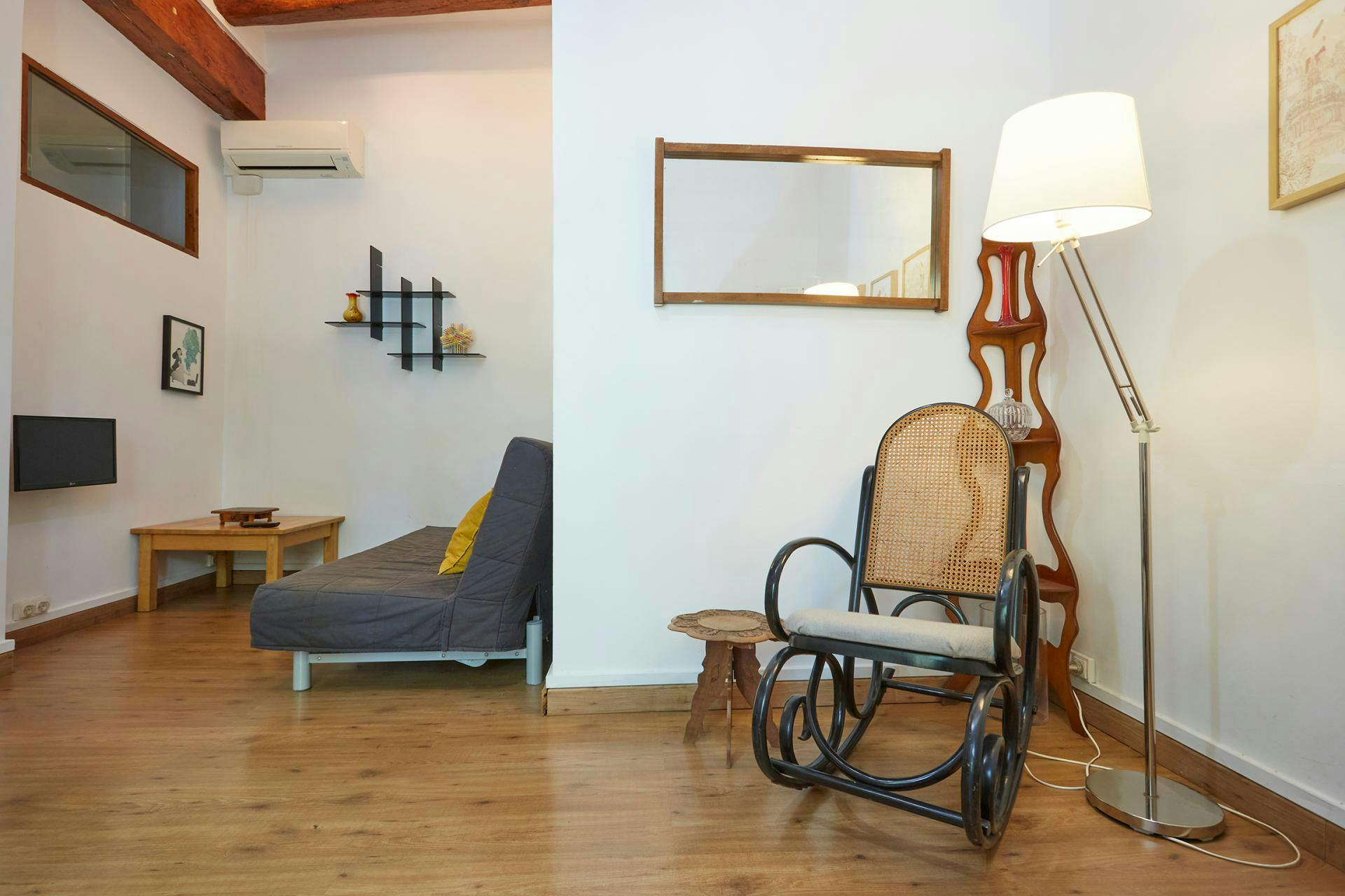 Cozy one-bedroom apartment with plenty of natural light and balconies facing Rambla del Raval, for rent in the Ciutat Vella district , the old town of Barcelona. The apartment is in very good condition and is fully furnished, with a modern and functional decoration and plenty of natural light, thanks to two balconies with large windows that overlook the street. It has a living-dining room with a sofa bed and television, a fully equipped kitchenette, a bathroom with a shower and a spacious double room. In endowment you will also have air conditioning and internet connection. There are many facets to this interesting area known as the Raval, it is a vibrant and exciting place with a lot of character and personality. An authentic historical area, full of life, multicultural, with a wide range of tempting cafes, restaurants and bars. The site is also famous for the imposing MACBA (Museum of Contemporary Art) and the CCCB (Exhibition Center). Unlike the Eixample with its well-known designer brands, in the Raval you will discover exclusive shops that sell clothes that you will not find anywhere else. The area is very well connected with the rest of the city by public transport , the metro stops closest to the property are Liceu, L3, Paralel, L2, L3 and Sant Antoni, L2. Contact (hidden) for more information. ADMINISTRATION FEE: 1 month's rent + 21% VAT LOCAL TAXES (I.T.P.): 0.5% of the total reservation (Monthly cost calculated as "other" in the Rent summary. The total amount will be collected before the check-in) BOOKING PROCESS: After the reservation is confirmed, you will be required to pay the remaining payments before the handover of the keys. EARLY-BOOKING POLICY (requests 2 months in advance) If you are planning to book an occupied apartment more than 2 months in advance, we cannot confirm the availability yet (The current tenants have the right to extend their stay). Please, get in contact with us 2 months before your move-in date. NO DISCOUNTS POSSIBLE BOOKING PROCESS: After the reservation is confirmed, you will be required to pay the remaining payments directly to the advertiser before the handover of the keys...