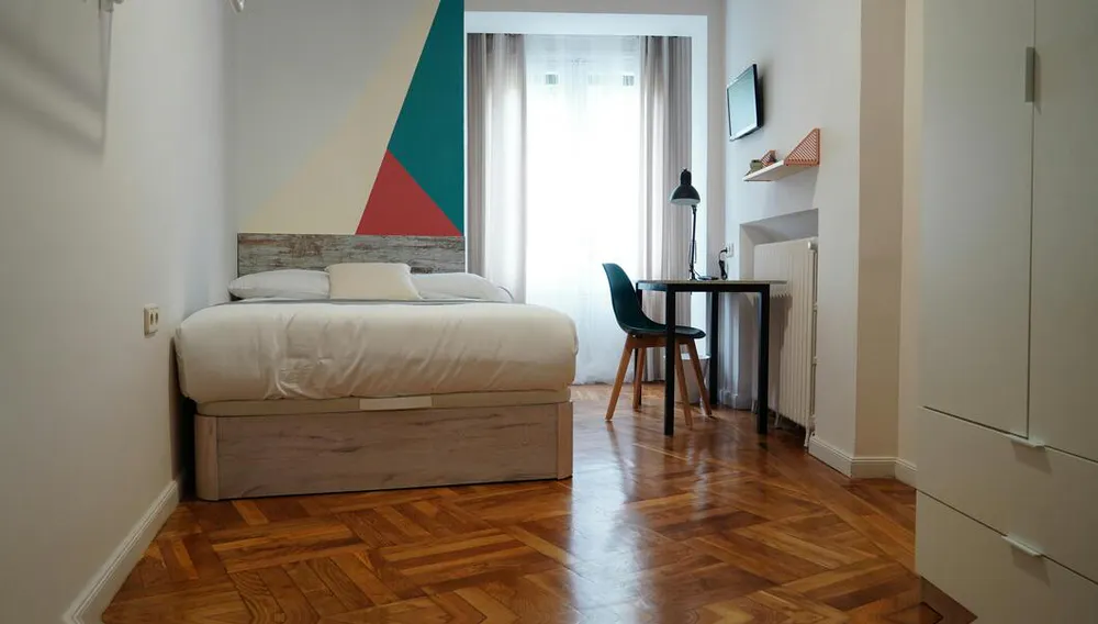 HABITACIÓN CON CAMA DE MATRIMONIO La habitación cuenta con cama matrimonio, zona de escritorio, armario. El apartamento cuenta con cocina completamente equipada, 2 baños y 1 aseo compartidos por un máximo de 10 personas. Nuestro coliving está enfocado a estudiantes y jóvenes profesionales, generalmente entre 18 y 40 años, y ambiente internacional. Buscamos que disfrutes de Madrid y que tu estancia sea cómoda, por ello te ofrecemos amplias zonas comunes y además nuestros asesores te ayudaran ante cualquier duda. Al hacer tu reserva queremos que disfrutes con nosotros, estés cómodo y cuentes con nuestro equipo y comunidad, por ello no solo te ofrecemos un alquiler, sino que alojándote con nosotros: • Formarás parte de nuestra comunidad, teniendo acceso a eventos y actividades semanales para que descubras Madrid y te sientas como en casa siendo uno más. • Disfrutaras de la terraza al aire libre • Limpieza semanal de las zonas comunes • Servicio de mantenimiento • Posibilidad de empadronamiento (City registration) para estancias a partir de 6 meses • Servicio Medico 24/7 por Quirón Salud • Atención al cliente 24/7 a través de nuestro departamento de Atención al coliver • Invitación a eventos y actividades especiales • Ropa de cama y toallas • Suministros incluidos en el precio como electricidad, agua, calefacción y internet de alta velocidad (hasta un máximo de 70€ ) Condiciones: • Un mes de Fianza • Admin fee / Member Live it Club: 150€ (pago único) - Regalo de Bienvenida - Pertenencia al programa de fidelización de la empresa (Descuentos en Service apartments, Hoteles, Hostales) para amigos y Familiares - Descuentos en empresas de proximidad (Gimnasios, supermercados, bares...) - Invitación VIP a las fiestas y eventos organizadas por nosotros • Consultar estancia mínima • De documentación únicamente solicitamos DNI o pasaporte Nuestro coliving está enfocado a estudiantes y jóvenes profesionales que quieren disfrutar de una estancia en Madrid. La ubicación es inmejorable cerca del metro Iglesia y Alonso Martínez, rodeado de restaurantes, cafés y tiendas. 💵 Payments before the check-in: Once the reservation is confirmed, you will be required to make the additional payments (security deposit, etc.) through our secure payment system before the move-in date...