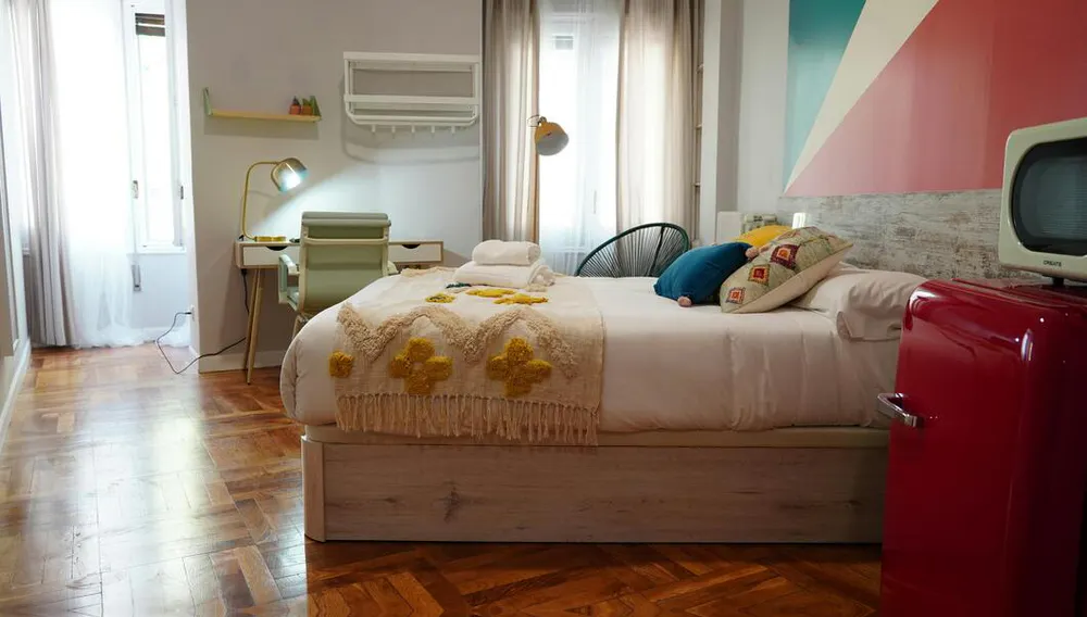 HABITACIÓN CON CAMA DE MATRIMONIO La habitación cuenta con cama matrimonio, zona de escritorio, armario. El apartamento cuenta con cocina completamente equipada, 2 baños compartidos por un máximo de 10 personas. Nuestro coliving está enfocado a estudiantes y jóvenes profesionales, generalmente entre 18 y 40 años, y ambiente internacional. Buscamos que disfrutes de Madrid y que tu estancia sea cómoda, por ello te ofrecemos amplias zonas comunes y además nuestros asesores te ayudaran ante cualquier duda. Al hacer tu reserva queremos que disfrutes con nosotros, estés cómodo y cuentes con nuestro equipo y comunidad, por ello no solo te ofrecemos un alquiler, sino que alojándote con nosotros: • Formarás parte de nuestra comunidad, teniendo acceso a eventos y actividades semanales para que descubras Madrid y te sientas como en casa siendo uno más. • Disfrutaras de la terraza al aire libre • Limpieza semanal de las zonas comunes • Servicio de mantenimiento • Posibilidad de empadronamiento (City registration) para estancias a partir de 6 meses • Servicio Medico 24/7 por Quirón Salud • Atención al cliente 24/7 a través de nuestro departamento de Atención al coliver • Invitación a eventos y actividades especiales • Ropa de cama y toallas • Suministros incluidos en el precio como electricidad, agua, calefacción y internet de alta velocidad (hasta un máximo de 70€ ) Condiciones: • Un mes de Fianza • Admin fee / Member Live it Club: 150€ (pago único) - Regalo de Bienvenida - Pertenencia al programa de fidelización de la empresa (Descuentos en Service apartments, Hoteles, Hostales) para amigos y Familiares - Descuentos en empresas de proximidad (Gimnasios, supermercados, bares...) - Invitación VIP a las fiestas y eventos organizadas por nosotros • Consultar estancia mínima • De documentación únicamente solicitamos DNI o pasaporte Nuestro coliving está enfocado a estudiantes y jóvenes profesionales que quieren disfrutar de una estancia en Madrid. La ubicación es inmejorable cerca del metro Iglesia y Alonso Martínez, rodeado de restaurantes, cafés y tiendas. 💵 Payments before the check-in: Once the reservation is confirmed, you will be required to make the additional payments (security deposit, etc.) through our secure payment system before the move-in date...