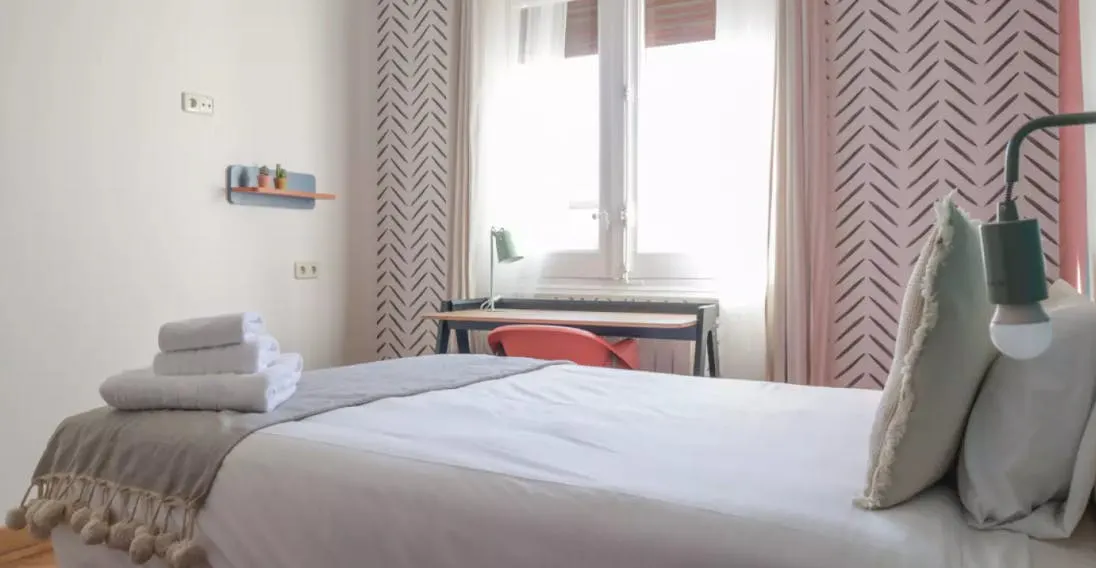 HABITACIÓN CON CAMA DE MATRIMONIO La habitación cuenta con cama matrimonio, zona de escritorio, armario. El apartamento cuenta con cocina completamente equipada, 2 baños y 1 aseo compartidos por un máximo de 10 personas. Nuestro coliving está enfocado a estudiantes y jóvenes profesionales, generalmente entre 18 y 40 años, y ambiente internacional. Buscamos que disfrutes de Madrid y que tu estancia sea cómoda, por ello te ofrecemos amplias zonas comunes y además nuestros asesores te ayudaran ante cualquier duda. Al hacer tu reserva queremos que disfrutes con nosotros, estés cómodo y cuentes con nuestro equipo y comunidad, por ello no solo te ofrecemos un alquiler, sino que alojándote con nosotros: • Formarás parte de nuestra comunidad, teniendo acceso a eventos y actividades semanales para que descubras Madrid y te sientas como en casa siendo uno más. • Disfrutaras de la terraza al aire libre • Limpieza semanal de las zonas comunes • Servicio de mantenimiento • Posibilidad de empadronamiento (City registration) para estancias a partir de 6 meses • Servicio Medico 24/7 por Quirón Salud • Atención al cliente 24/7 a través de nuestro departamento de Atención al coliver • Invitación a eventos y actividades especiales • Ropa de cama y toallas • Suministros incluidos en el precio como electricidad, agua, calefacción y internet de alta velocidad (hasta un máximo de 70€ ) Condiciones: • Un mes de Fianza • Admin fee / Member Live it Club: 150€ (pago único) - Regalo de Bienvenida - Pertenencia al programa de fidelización de la empresa (Descuentos en Service apartments, Hoteles, Hostales) para amigos y Familiares - Descuentos en empresas de proximidad (Gimnasios, supermercados, bares...) - Invitación VIP a las fiestas y eventos organizadas por nosotros • Consultar estancia mínima • De documentación únicamente solicitamos DNI o pasaporte Nuestro coliving está enfocado a estudiantes y jóvenes profesionales que quieren disfrutar de una estancia en Madrid. La ubicación es inmejorable cerca del metro Iglesia y Alonso Martínez, rodeado de restaurantes, cafés y tiendas. 💵 Payments before the check-in: Once the reservation is confirmed, you will be required to make the additional payments (security deposit, etc.) through our secure payment system before the move-in date...