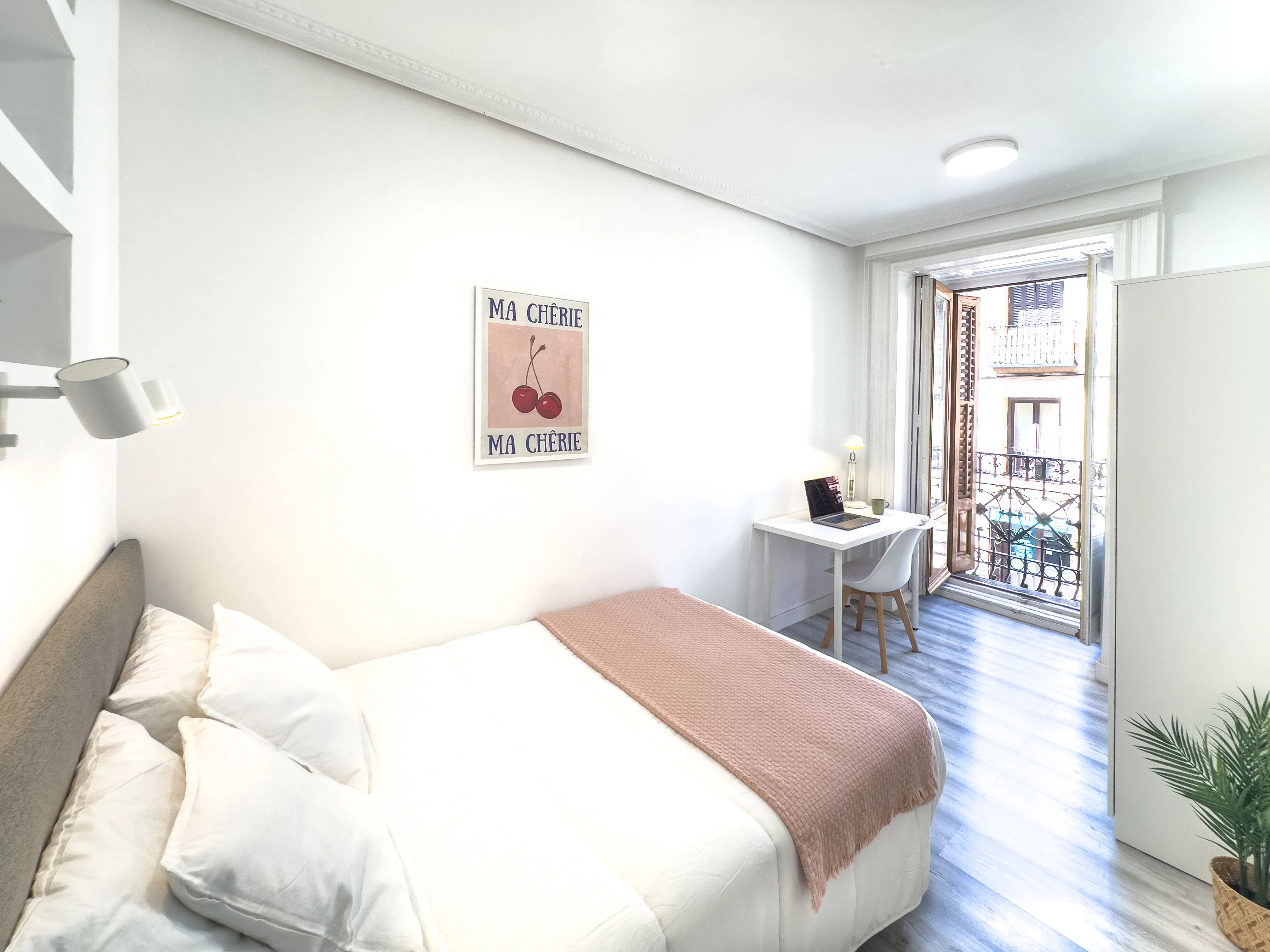 ENGLISH : New Single room for rent with double bed and balcony. Opened in January in a fully renovated apartment! Perfect house to meet new people and friends if you are new to the city! €750 all-inclusive. Room in apartment with cleaning of common areas twice a week, with a 135 bed, wardrobe, desk and outside balcony. The house has in common areas: Resting area with sofa and 50" TV. High speed internet 600mb, electricity, heating, hot water, cleaning and maintenance. The house has 5 bathrooms. Intercom and elevator. The atmosphere is quiet and cozy with everything you need for a perfect stay. As for the area, the apartment is located in the center of Madrid, very close to Plaza Santa Ana, Sol, Calle Mayor, Callao and all the tourist attractions of the city. It is perfectly connected to the metro service (Antón Martin and Tirso de Molina stations Line 1 2 min walk), several bus lines and the Atocha/Renfe station 10 min away. The area has all kinds of services (markets, pharmacies, etc.) and is also close to universities and business schools. Contact us and we will organize a visit! Possibility of making a video call if you are from outside Madrid. Don't miss this opportunity! SPANISH: Se alquila habitación individual con cama doble y Balcon. Nueva, inaugurada en enero en piso con reforma integral! ¡Casa perfecta para conocer gente nueva y amigos si eres nuevo en la ciudad! 750 € todo incluido. Habitación en vivienda con limpieza dos veces por semana de zonas comunes, con cama de 135, armario, escritorio y balcón exterior. La casa tiene en zonas comunes: Zona descanso con sofá y TV de 50". Internet alta velocidad 600mb, electricidad, calefacción, agua caliente, limpieza y mantenimiento. La casa tiene 5 baños. Intercomunicador y ascensor. El ambiente es tranquilo y acogedor con todo lo necesario para una estancia perfecta. En cuanto la zona, el piso se encuentra ubicado en pleno centro de Madrid, muy cercano a Plaza Santa Ana, Sol, Calle Mayor, Callao y todos los puntos de interés turístico de la ciudad. Está perfectamente comunicado con el servicio de metro (estaciones de Antón Martin y Tirso de Molina Línea 1 a 2 min caminando), varias líneas de autobuses y la estación de Atocha/Renfe a 10 min. La zona dispone de todo tipo de servicios (mercados, farmacias, etc. ) y asimismo está cerca de universidades y escuelas de negocios. Contáctanos y organizamos una visita! Posibilidad de hacer video llamada si eres de fuera de Madrid. ¡ No pierdas esta oportunidad...