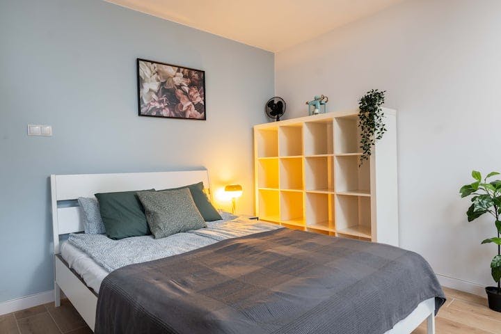 Welcome to a spacious and sunny studio apartment that offers a stunning view of the PGE National Stadium. This delightful apartment, measuring 28 square meters, features an entire wall of windows that flood the space with natural light, creating a bright and inviting atmosphere. The picturesque view of the stadium adds a unique and vibrant element to the apartment, making it a perfect retreat in the heart of the city. The studio is thoughtfully designed to provide maximum comfort and functionality. It includes a comfortable double bed, ensuring a restful night's sleep, and a cozy sofa that offers additional seating and relaxation space. The living area also features a table with chairs, creating a perfect spot for dining, working, or enjoying your morning coffee while taking in the beautiful view. The fully equipped kitchenette has everything you need to prepare meals, including modern appliances, utensils, and cookware. Whether you're cooking a simple breakfast or a gourmet dinner, you'll find the kitchenette to be a practical and enjoyable space. One of the standout features of this apartment is the free parking available to residents. The parking area is securely located behind a gate that can be opened with a remote control, ensuring both convenience and peace of mind. We provide a remote control for the entrance gate, allowing you to easily access the parking spaces reserved for residents. This is an ideal feature for those traveling by car, as it eliminates the hassle of finding parking in a busy city. The neighborhood surrounding the apartment is perfect for those who enjoy green spaces and outdoor activities. The entrance to the beautiful Skaryszewski Park is just around the corner, offering a serene and picturesque setting for leisurely walks, jogging, or simply enjoying nature. The park is a beloved local attraction, known for its scenic beauty and tranquil atmosphere. In addition to the park, the area boasts a variety of shops and restaurants conveniently located downstairs. Whether you're looking to do some shopping, grab a quick bite to eat, or enjoy a sit-down meal at a restaurant, you'll find plenty of options just steps away from the apartment. Transportation is also incredibly convenient, with the Waszyngtona bus and tram stop located just downstairs. From here, you can reach the city center in just a few minutes by tram, making it easy to explore all that the city has to offer. The proximity to public transportation ensures that you can navigate the city effortlessly, whether you're commuting for work or sightseeing. The entire apartment is available for your exclusive use, providing a private and comfortable space to call home during your stay. We provide fresh bed linen and towels for each guest, ensuring a comfortable and hassle-free experience from the moment you arrive. In summary, this spacious and sunny studio apartment offers a perfect blend of comfort, convenience, and vibrant city living. With its stunning view of the PGE National Stadium, fully equipped kitchenette, free parking, and excellent location near Skaryszewski Park and public transportation, it provides an ideal base for exploring the city. Book now and enjoy a delightful stay in this charming and well-appointed studio apartment...