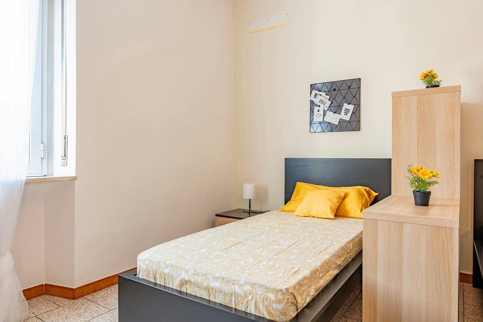 The apartment of Piazzale Martini 14 is a 3 bedrooms flat for university students, interns and young workers. It is composed of a large entrance with kitchen, 3 bedrooms, of which two private and 1 shared room, and 1 bathroom. The apartment is almost 80 squared meters and it has been recently renewed in the fornitures. The apartment is located at the third floor of a residential building with conciergery. In an apartment located in Piazzale Martini 14, this shared room is reserved for university students, interns or young workers. Fully furnished, it is equipped with two single beds, each one with bedside table and lamp, two wardrobes, two bookcases, two desks and chairs. The room has also a private bathroom. Kitchen, living room and the second bathroom are shared with the other tenants of the apartment. Includes utilities: building expenses, heating, water, electricity, internet, garbage tax, periodical cleaning services of common areas; utilities adjustments excluded. RENTAL CONDITIONS: -BI-WEEKLY CONTRACT: If you move in during the 2nd half of the month, you will only pay half-a-month’s rent for that month. If you move out during the 1st half of the month, you will only pay half-a-month’s rent for that month. I always rent from the first day the room is available. - ALL - INCLUSIVE Monthly rent: water, gas, electricity, wi-fi, condominium fee all included! - DEPOSIT that it will be given back to you at the end of your stay. - CONTRACT REGISTRATION (one time fee): depending on the room you are interested in. Please check the field OTHER to see this fee. - ONE TIME ADMIN FEE: We are a professional property management company and for this reason we also include initial and final cleaning of the room; cleaning of common area of the flat every two weeks; 2 bed-linen; contract activation and termination: professional assistance service and property maintenance during your stay: we will take care of everything! Do you want to finish your contract earlier than agreed? Don’t worry, please inform us and if you find a substitute (of course we can also help you!), you can leave without any type of penalties. Please be aware that HousingAnywhere is an online booking platform. Therefore exchanging contact details and offering viewings is not possible. If you would like to reserve this accommodation, send me a booking request or a message and please mention your age and occupation....