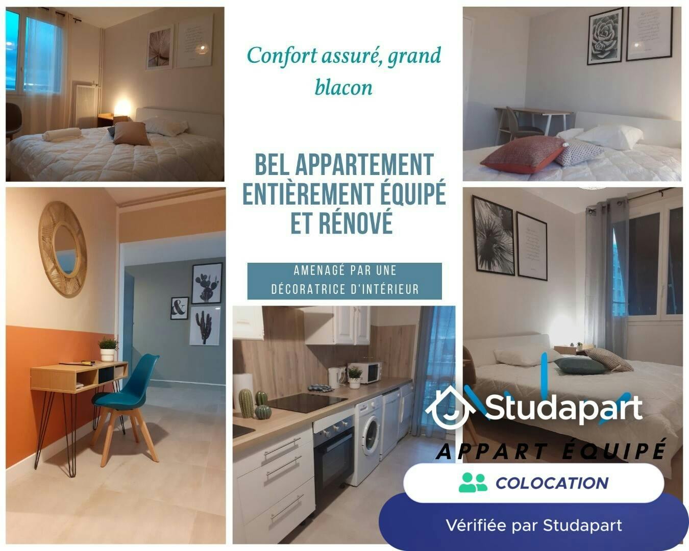 1 chambre(s) libre(s) dans une colocation de 1 chambres dans un appartment de 94m2 ***NOUVELLE CHAMBRE meublée en COLOCATION ’’Over The Rainbow’ ’APPARTEMENT**** UNE FORMULE TOUT INCLUS LOGEMENT pour travailleurs, jeunes actifs Bonjour, Je vous propose une chambre meublée dans un appartement de 90m2 agréable à vivre, tout équipé et meublé pour une colocation de qualité. Idéal pour un séjour de longue durée. Ambiance partage, tranquillité, vie de jeunes actifs L’appartement se compose de 4 chambres, lumineux et traversant Est Ouest donnant une superbe vue du grand balcon. Il est situé au 123 route de Montélier à Valence, dans une résidence sécurisée au 4ème étage avec ascenseur, idéalement placé à deux pas du centre-ville et de toutes les commodités. Idéal pour les déplacements en vélo avec un accès spécifique pour garage à vélos. Un arrêt de bus est situé au pied de l’immeuble Une rénovation complète a été effectuée en 2020, le mobilier est entièrement neuf et pensé par une décoratrice d’intérieur. Conçu spécialement pour votre confort, cet appartement a été pensé pour garantir le bien-être de ses colocataires. UNE FORMULE TOUT INCLUS AU FORFAIT : INTERNET HAUT DEBIT, ELECTRICITE, CHAUFFAGE, EAU FROIDE ET CHAUDE, CHARGES PARTIES COMMUNES Plus besoin de courir et de perdre du temps précieux, vous avez plus qu’à poser vos valises. Pas de déménagement, d’achat et aucun abonnement à contacter. Pas de frais d’agence. Votre budget est ainsi maitrisé, pas de mauvaise surprise en fin de mois. ++++ A propos de l’appartement ++++ 4 chambres meublées de 10 à 11m2 (dont 1 chambres de 20m2 très grandes), standing et décorée avec gout par une décoratrice d’intérieure, tout confort, grand lit double 140 *200, bureau chaise, télévision, placards de rangement, table de nuit, lampe de chevet, oreiller, couettes et accès internet haut débit fibre wifi. Les chambres sont équipées de fenêtres double vitrage, deux chambres procèdent des grands balcons Grand salon cuisine ouvert moderne avec un balcon dans la cuisine. Tout équipé de rangements, comprenant un bar, four, plaque de cuisson, frigo congélateur, bouilloire, cafetière, four à micro-onde, télé avec internet / wifi, Vaisselle-ustensile et matériel de cuisine complet, lave-linge, sèche-linge et lave-vaisselle ++++ Localisation et services++++ L’appartement est dans une résidence sécurisée, à deux pas de toutes les commodités et du centre-ville. o Proximité de Valence plateau des couleurs o Accès à toutes les lignes de bus desservant tous les quartiers de la ville o Tous les commerces et services (Pharmacie, banques, restaurants, boulangeries, supermarché, coiffeur, médiathèque, etc.) o Proche de la zone industrielle et commerciale de Valence ++++ la colocation en elle-même ++++ Cout mensuel : Durée minimum : 1 mois, dans l’idéal 12 mois. Bail individuel, de mobilité Garant : 1 minimum demandé Aide au logement : ce logement donne la possibilité de bénéficier des aides au logement de 80€ à 180€ suivant votre situation. Le nombre d’occupants est limité à 4 personnes, un par chambre. Pas de fête, ni de soirée, logement pour travailleurs Pour plus de renseignements, n’hésitez pas à nous contacter. David Updated on 27/11/202...