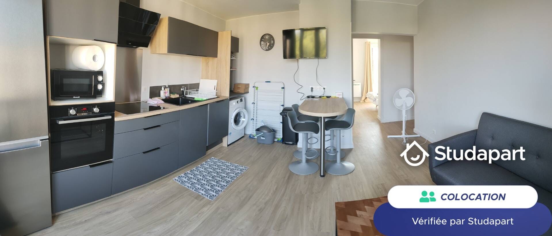 1 chambre(s) libre(s) dans une colocation de 1 chambres dans un appartment de 68m2 Appartement de 4 chambres en colocation à Aix en Provence juste en face de l'école ESSCA Corsy. (Residence le Galice Batiment A) 4ème étage sans ascenseur Très lumineux, aucun vis à vis. Internet (fibre), EDF , eau compris. Couette et oreillers fournis (pas les draps) -- il y a 3 garçons aujourd'hui dans la coloc -- minimum 6 mois 1 salon + cuisine ouverte 1 Salle de douche commune comprenant 1 toilette (pour les 3 chambres) 1 toilette individuel (accessible pour 4 chambres) 1 Douche + Lavabo dans la grande chambre 2 chambres de 9M2 -- une chambre à louer à partir de maintenant lit 120cm 1 chambre environ 11M2 lit 140cm 1 chambre environ 14M2 avec douche et lavabo individuels lit 140cm 1 mois de caution (montant du loyer charges comprises) Garantie demandée (visale ou autres type studapart) Pas de couple. 1 personne par chambre. Updated on 19/02/2026 Le propriétaire de ce bien utilise Studapart pour louer son logement en toute sécurité. *Comment ça marche ?* Vous recevez un email Studapart et cliquez sur le lien de l’annonce. Vous créez votre compte Studapart et envoyez votre candidature (dossier + message) sans aucun frais. Si votre profil est retenu, vous pourrez faire une demande de réservation. Les frais Studapart ne sont débités qu’en cas de confirmation de réservation afin de vous garantir une location 100% sécurisée...