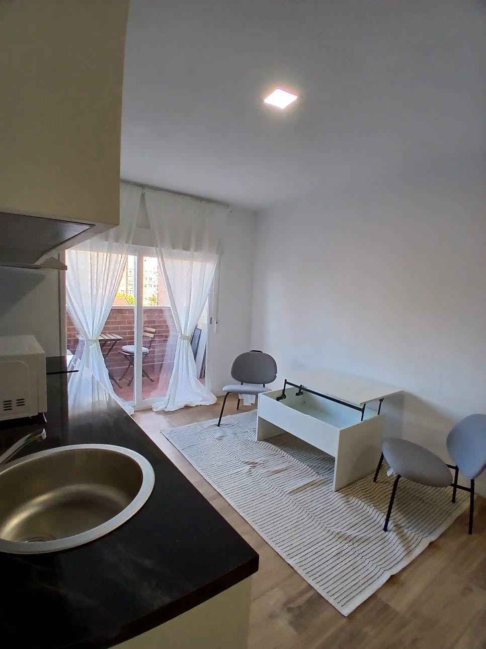 Espectacular estudio a estrenar, ubicado en la quinta planta con ascensor, con terraza privada, vistas exteriores que llenan de luz y energía el espacio. Con 20m2 construidos. Disfrutarás de la comodidad de una cocina equipada con nevera, microondas y vitrocerámica, perfecta para preparar tus comidas favoritas. En la terraza podrás relajarte y disfrutar de tus cenas y desayunos favoritos. El amplio baño privado te ofrece una mezcla de comodidad y modernidad de la que te enamorarás....