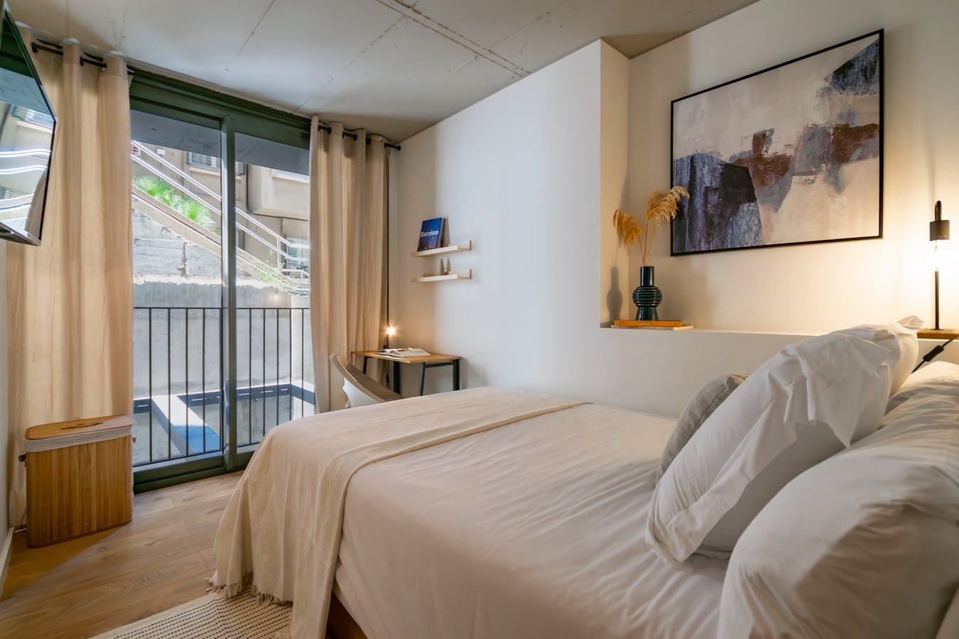 Welcome to Room Traviata in Casa Nonna, a bright and modern space filled with natural light from a private balcony. The room’s airy atmosphere is enhanced by its large windows, creating a refreshing and inviting environment. Casa Nonna offers a spacious, two-floor layout, designed for comfort and connection, located in the tranquil and green El Guinardó neighbourhood. El Guinardó is a peaceful hillside neighbourhood with green spaces, stunning views, and rich history. Home to Parc del Guinardó and the UNESCO-listed Hospital de Sant Pau, it offers tranquility with great transport links....