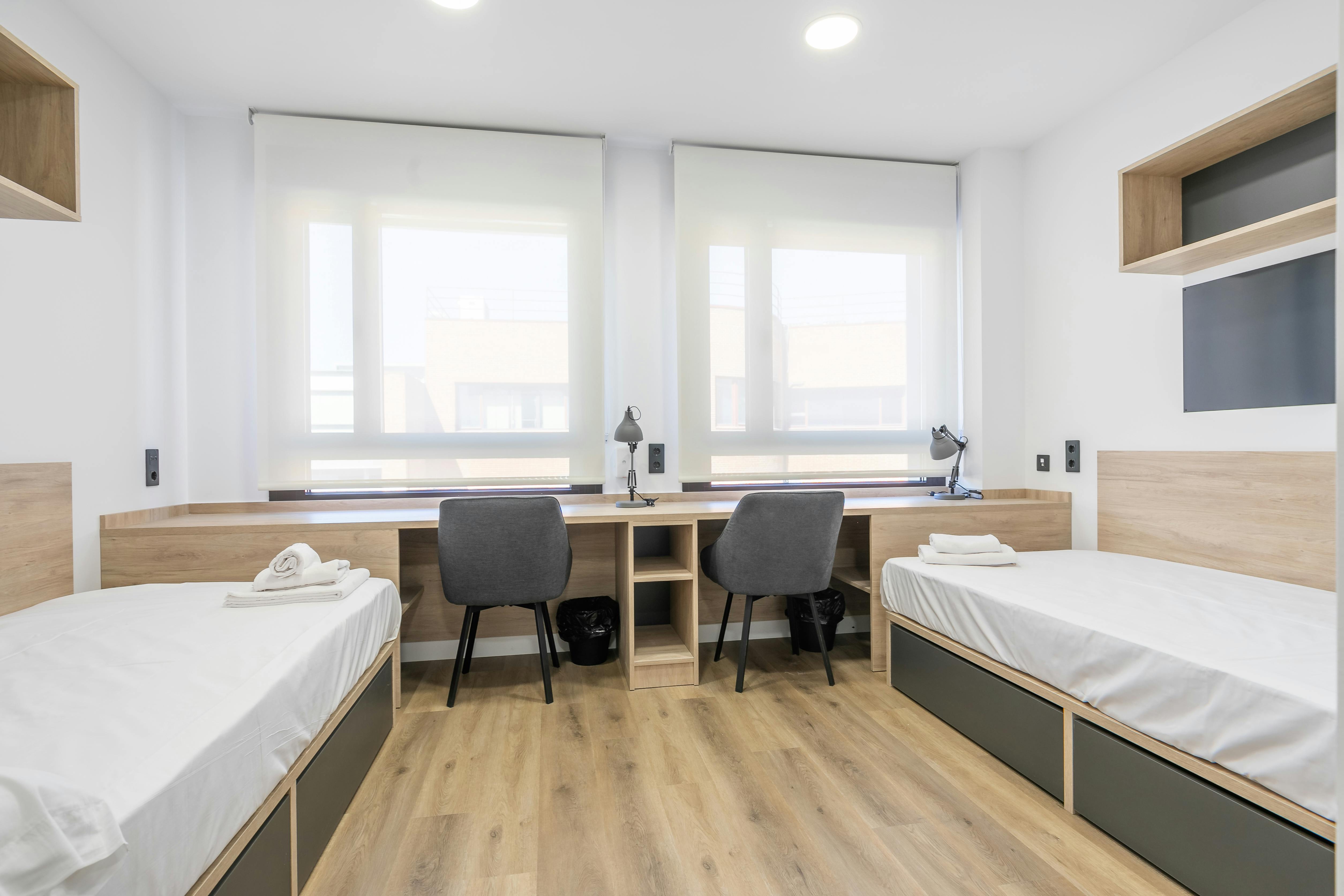 Lerne, arbeite, knüpfe Kontakte und fühle dich wie zu Hause.Entdecken Sie mehr Studentenwohnungen in Madrid🌟 Exclusive Promo only for your university !! 50% DISCOUNT IN ADMIN FEE apply in the second month of your rent. Example admin fee 200€: 1- You will pay the full administration fee of 200€. 2- When you will pay the second month, you will have a discount of 100€. 🌟 You can use your uni promo code and get a special discount in HousingAnywhere Tenant Protection fee. Steps: - 'I have a promo code'' at the checkout, enter the promo code and hit ''apply'' - If it is legit, you will get it as cash back in 7-10 business days. 🔸Special discount for academic year bookings (9,5 or 10 months stays) Contact us in chat to apply for the discounted price! 🔸Cleaning room, change of sheets and towel included in the price. It is fortnightly. 🔸For the stays above 9 months, could be we charge a bit higher administration fee. Please inquire in the chat !! 💢💢💢 🏡Building, common areas and type of units More than a residence, a university neighbourhood in Madrid Norte. A campus with 11 buildings where you can enjoy all the facilities and meet students like you. This residence offers rooms and studios fully furnished. You will live in 1 residence, but you will have access to 11 common areas: - Swimming Pool: Relax and enjoy leisure time by the swimming pool. - Gym: Stay active with a fully equipped fitness center. - Entertainment Room: A dedicated space to unwind and socialize - Social Hub: Connect with fellow residents in a communal gathering space. - Study Room: Quiet study spaces for focused academic pursuits. - Swimming Pool: Relax and enjoy leisure time by the swimming pool. - Laundry Room: Convenient on-site laundry facilities. - Restaurant: On-site dining options for added convenience. - Dining areas: areas with oven, microwave, vending machines, and space to eat (No stoves for cooking, no fridge, no common kitchenware. You need you bring your own kitchenware) - Terrace: Outdoor terrace space to enjoy fresh air and city views. - Parking: Secure parking facilities for residents. 📍Location and Neighborhood The residence is located in the north of Madrid, in the Fuencarral neighborhood and offers modern and comfortable accommodation for university students looking for a unique experience during their stay in the city. In a quiet and well-communicated area to enjoy the full experience as a student. Whether you come to Madrid to study a university degree, a master's degree or a specialisation course, here you will find an environment designed to make you feel at home from the very first day. SHARED ROOM AND BATHROOM In-Room Features: Large closets, desks, and air conditioning for added comfort. This room does not contain a TV screen. Immerse yourself in a supportive community, enjoy top-notch facilities, and experience the best of Madrid. Welcome to a space where convenience, comfort, and community converge for an enriching student experience. 💢💢💢 🔸City registration is possible for stay of more than 6 months. 🔸After the reservation is completed, you will be required to pay the deposit and other fees through our secure payment system....