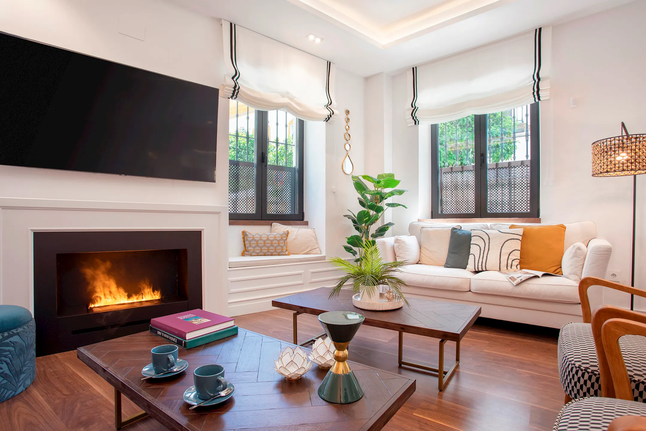 Exclusive three-story house with four bedrooms, all featuring en-suite bathrooms, individual air conditioning, and TV. Located on Calle Pescadores, just behind the Church of San Lorenzo and a few steps from Alameda de Hércules, this home offers comfort and a prime location. Upon entering, the fully equipped kitchen with a breakfast bar and dining table for eight is on the left. On the right is the living room furnished with two sofas, two armchairs, side tables, and a Smart TV. A guest toilet is also on this ground floor for convenience. Upstairs, a reading area connects two bedrooms with king-size beds measuring 180x200 cm. On the second floor, to the left is a bedroom with two twin beds (105x200 cm) and to the right another bedroom with a king-size bed. This floor also features a terrace with a bench, chairs, and table, perfect for enjoying the outdoors. WiFi repeaters on each floor ensure excellent connectivity throughout the house. The area is peaceful and picturesque, ideal for experiencing authentic Sevillian atmosphere with easy access to traditional restaurants, shops, and historic sites. The booking of each (hidden) accommodation includes the offer of extra experiences or activities to improve your experience, which are managed by external providers, who will inform you by e-mail or (hidden), and you can contract or refuse them. For more information about the management of experiences and extra activities of the accommodations, please visit our Privacy Policy on our official website. ** For monthly stays, water and electricity supplies will be included up to a maximum of € 100 per month. If the expenses are higher, the guest will have to pay the difference. The corresponding invoice will be sent by the accommodation to the guest to verify the expenses** During your stay, the access to the property is limited exclusively to the number of individuals specified at the booking process. Consequently, entry to the property is strictly prohibited for persons not registered as guests. Failure to adhere to this rule will result in an additional charge amounting to 50% of the total cost of the stay as a penalty, or alternatively, immediate expulsion from the accommodation...