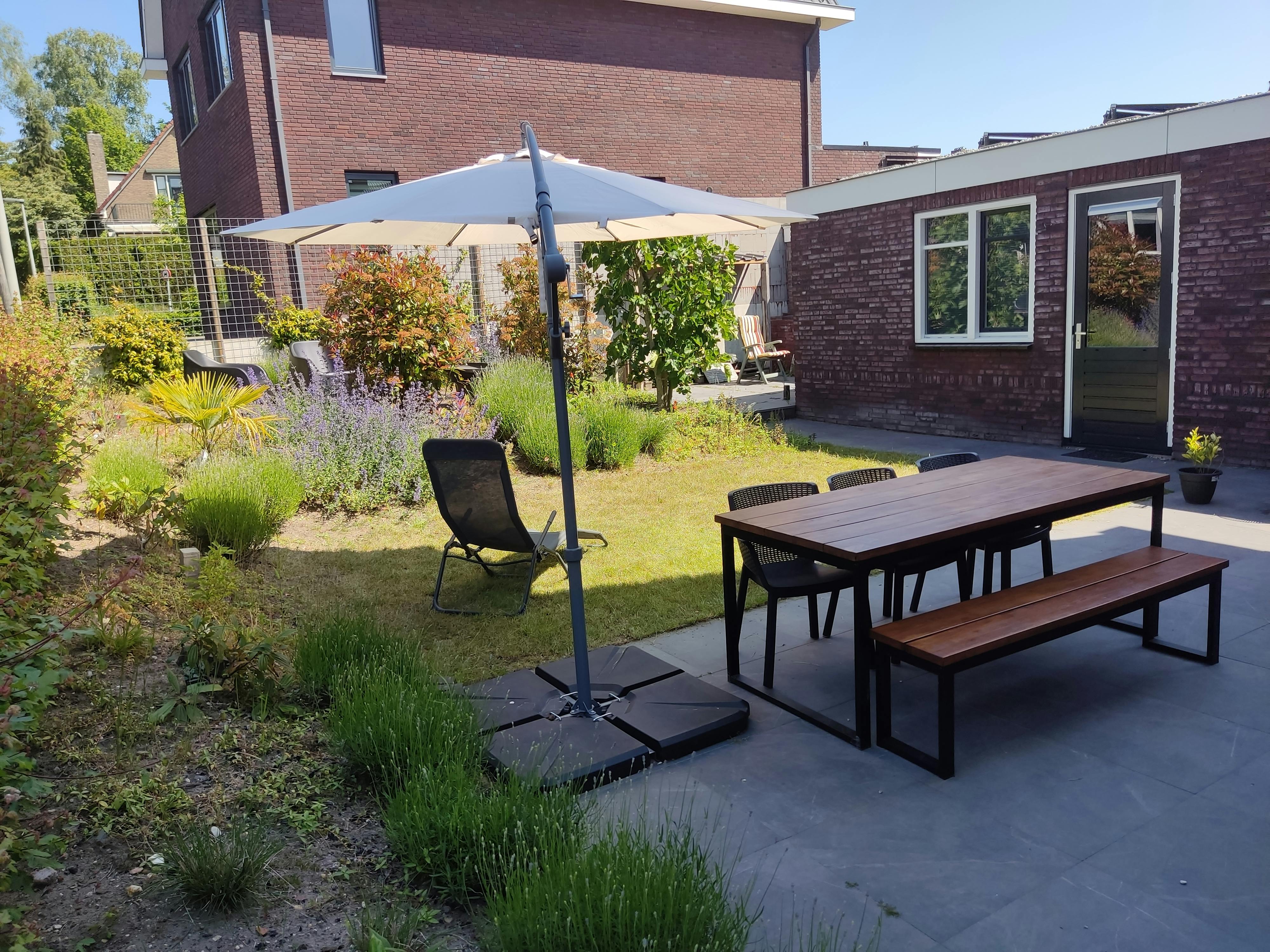 Tiny House at Cornfield Arnhem Perfectly located, a 1-minute walk from the (express) bus to Arnhem Central Station and Wageningen. The Tiny House overlooks the green and sunny backyard and has a private entrance, kitchen, and bathroom/toilet. The kitchen is small but well-equipped. Of course, there is perfectly working Wi-Fi. The bathroom has a nice shower with shampoo and shower gel, towels, toilet paper, toilet, and sink. The double bed is 140 cm x 200 cm and there is a wardrobe, a (work) table, and 2 chairs. You are welcome to enjoy the sunny garden and dine outside at the large dining table. Or enjoy a drink under the cozy veranda. Free parking in front of the door...