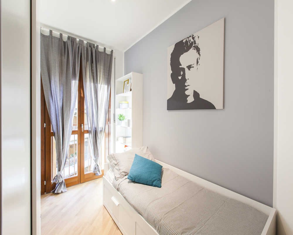 Single room in a shared apartment, composed by 6 bedrooms and 3 bathrooms. Of about 10 sqm with a single bed and a work station. With wifi, air conditioning, dishwasher, washing machine. Energy class: B, IPE 33.59 Kwh/Sqm year. Current tenants: 1: 20, Female, Student 2: 21, Female, Student Please be aware that HousingAnywhere is an online booking platform. Therefore exchanging contact details and offering viewings is not possible. If you would like to reserve this accommodation, send me a booking request or a message and please mention your age and occupation. I look forward to talking to you! CONTRACT Please, note that to all our listings we apply fortnightly contracts. This means that If you check-in during the first half of the month, you will be charged for the full month. If you check-in during the second half of the month, you will only be charged for the second half. The second half of the month starts on the 16th. If you check-out during the first half of the month, you will only pay until the 15th of that month. If you check-out during the second half of the month, you will be charged the full month....