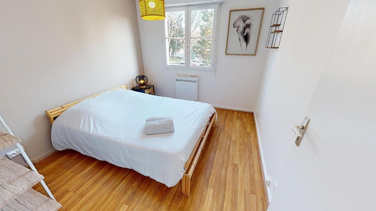 APPARTEMENT 4 PIÈCES AVEC BALCON Venez découvrir cette colocation de 3 chambres de 67 m2 située au 86 Rue De Stalingrad dans la commune de Grenoble (38100). 🛌 LA CHAMBRE L’aménagement de la chambre 2 offre tout le confort nécessaire grâce à son lit double, sa table basse et ses étagères. 🏠 LES ESPACES COMMUNS Les parties communes de cette colocation comprennent un salon à la forme asymétrique est équipé avec un canapé, une table à manger, des chaises, une TV. et une cuisine séparée. La cuisine est entièrement équipée avec une machine à laver, un four, des plaques de cuisson, un frigo, un micro-ondes, des rangements, etc. Une salle de bain moderne avec une grande douche et meuble vasque ainsi que des WC séparés viennent compléter ce logement. Le plus : une terrasse offrant une vue improbable sur les montagnes avec tables et chaises est accessible depuis le salon. Il bénéficie d'un chauffage individuel fonctionnant à l'électricité. Il bénéficie aussi de la fibre. Il se situe au 1er étage d'un immeuble avec ascenseur. 🌳 LES EXTÉRIEURS Un balcon ajoute à cet appartement un supplément d'espace appréciable. Une cave lui est associée. Tout est prévu pour votre véhicule : parmi les emplacements disponibles dans l'immeuble, une place de parking est réservée pour le T4. 🏙️ LE QUARTIER Cette colocation se trouve : à proximité de tous les commerces nécessaire à la vie de tous les jours à moins de 30 minutes à pied de l’hyper centre de Grenoble également accessible en moins de 15 minutes en transport (ligne de bus C3) à moins de 5 minutes à pied de l’arrêt de Tram MC2 : Maison de la culture desservi par la ligne A Les lignes de bus C3, 16, 81 et C5 circulent dans un rayon de 300 mètres autour du logement. ———————————————————————— Bail individuel à la chambre. Pas de caution solidaire. Chacun est libre de partir quand il veut sans se soucier des autres colocs, dès le moment où il respecte un mois de préavis. Eligible aux APL. Les informations sur les risques auxquels ce bien est exposé sont disponibles sur le site Géorisques : (hidden) Montant estimé des dépenses annuelles d'énergie pour un usage standard : 1500 € par an. Prix moyens des énergies indexés sur l'année 2021,2022,2023 (abonnements compris...