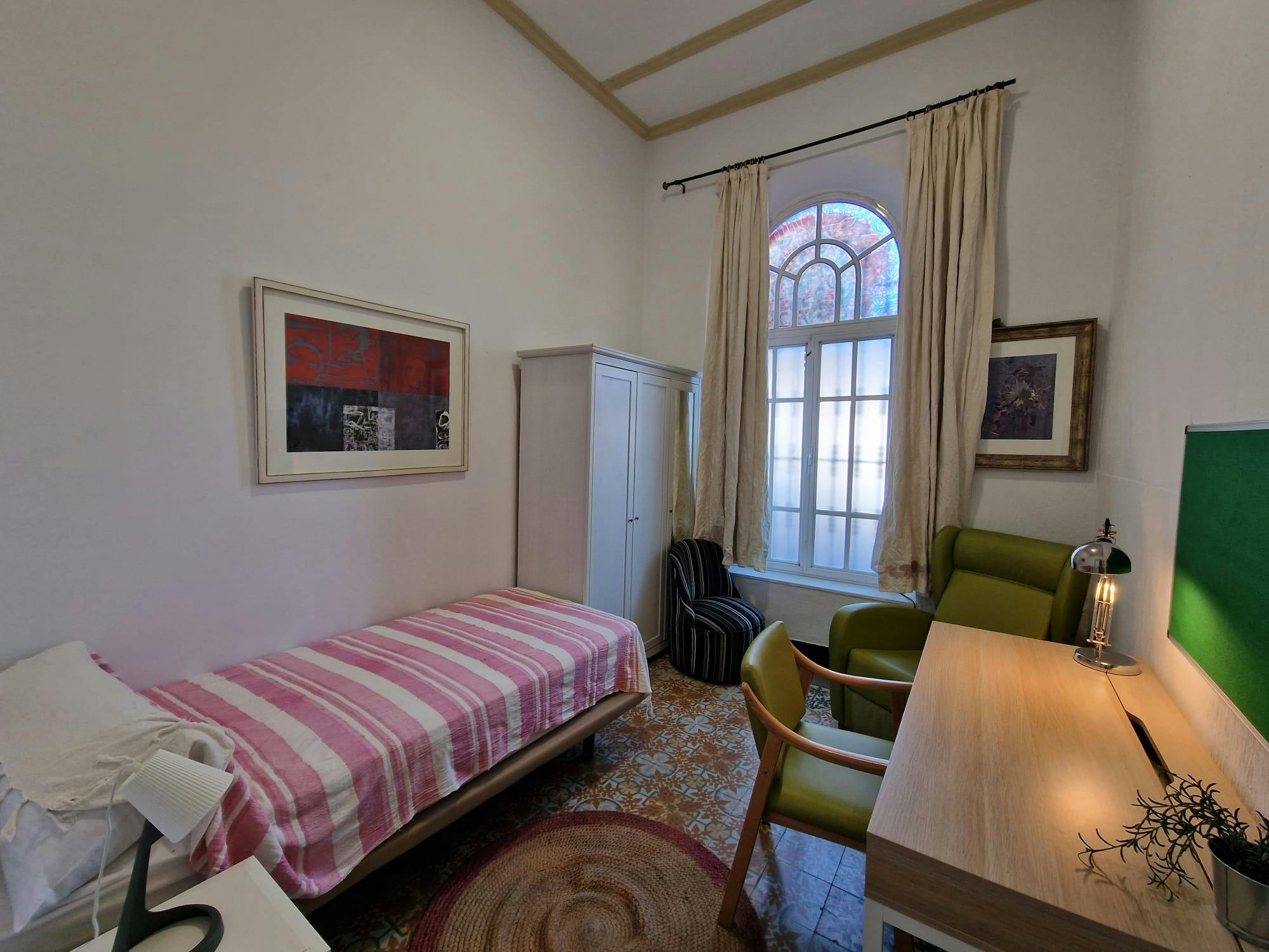 🏠 Room on Avenida de Jerez, Sevilla This spacious shared apartment is located on Avenida de Jerez, 102, in a quiet and modern residential area in the south of Seville. The flat has a total surface of 450 m2, spread across multiple levels, and includes a beautiful 100 m2 garden and a 150 m2 rooftop solarium – perfect for relaxing or studying outdoors. The apartment consists of 7 bedrooms and 4 bathrooms, making it ideal for a student or young professional seeking a sociable yet comfortable living environment. The room available is fully furnished with a single bed, desk and chair, built-in wardrobe, and a window overlooking the street, providing plenty of natural light throughout the day. It’s a cozy and functional space designed to help you feel right at home from day one. 🛋️ Shared Living Spaces & Amenities The common areas include a fully equipped kitchen, a large living and dining area, TV, washing machine, air conditioning, and central heating. All residents can enjoy the well-maintained communal spaces, perfect for cooking, relaxing, or socializing with flatmates. 📍 Location Conveniently located, the apartment is just 50 m from a Cercanías train stop and 100 m from a bus stop, ensuring excellent connections to the rest of the city. Nearby, you’ll find a Mercadona supermarket, a library, medical center, police station, Viamed Hospital, and Sant Mary School – all within walking distance, making everyday errands easy and stress-free. This home offers the perfect balance of privacy and community living, in a peaceful and well-connected area of Seville...