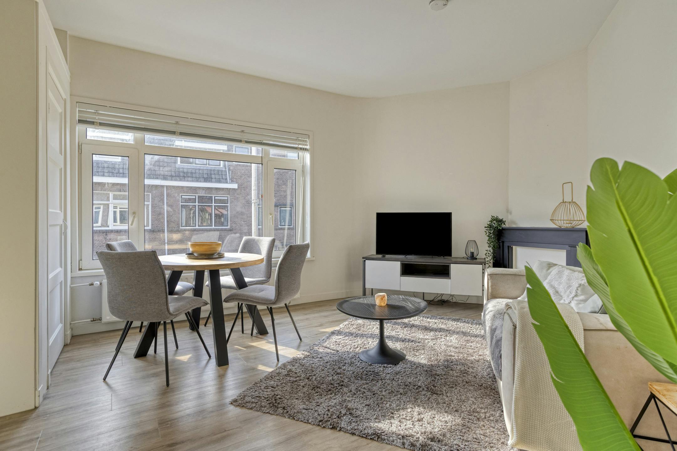 This beautifully spacious apartment is located on the 1st floor of this beautiful corner building. The apartment has a spacious living room that is characterized by a lot of light. Through sliding doors in the house you have access to a spacious bedroom. The apartment has a closed kitchen with various built-in appliances. Located at the rear bathroom with shower, sink and washer / dryer connection. There is a separate toilet in the entrance hall. In short, a beautiful spacious apartment in a fantastic location. The apartment is located on the Jan van Scorelstraat. This street is full of cozy cafes, restaurants and shops. The Wilheminapark, the shops on Burgemeester Reigerstraat and Nachtegaalstraat are within walking distance. You are also within a few minutes in the city center of Utrecht or at Utrecht Central Station. There is a bus stop in the immediate vicinity and the apartment is also conveniently located for various highways...