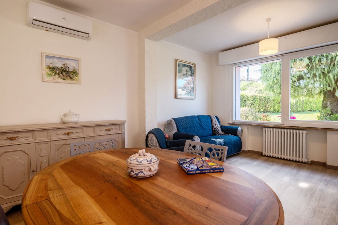 Appartamento intero e arredato in casa dotata di accesso indipendente, ampio giardino e cortile con parcheggio scoperto per l'auto, in comune con i proprietari che vivono nella stessa casa al piano superiore. A meno di 2 km dal centro di Arona e a 200 mt dal lago. Supermercati e ristoranti a circa 1 km dalla casa e stazione ferroviaria a 1,5 km comoda per raggiungere Milano in meno di un'ora. Aeroporto di Malpensa a mezz'ora di auto. Non si accettano animali, nò fumator...
