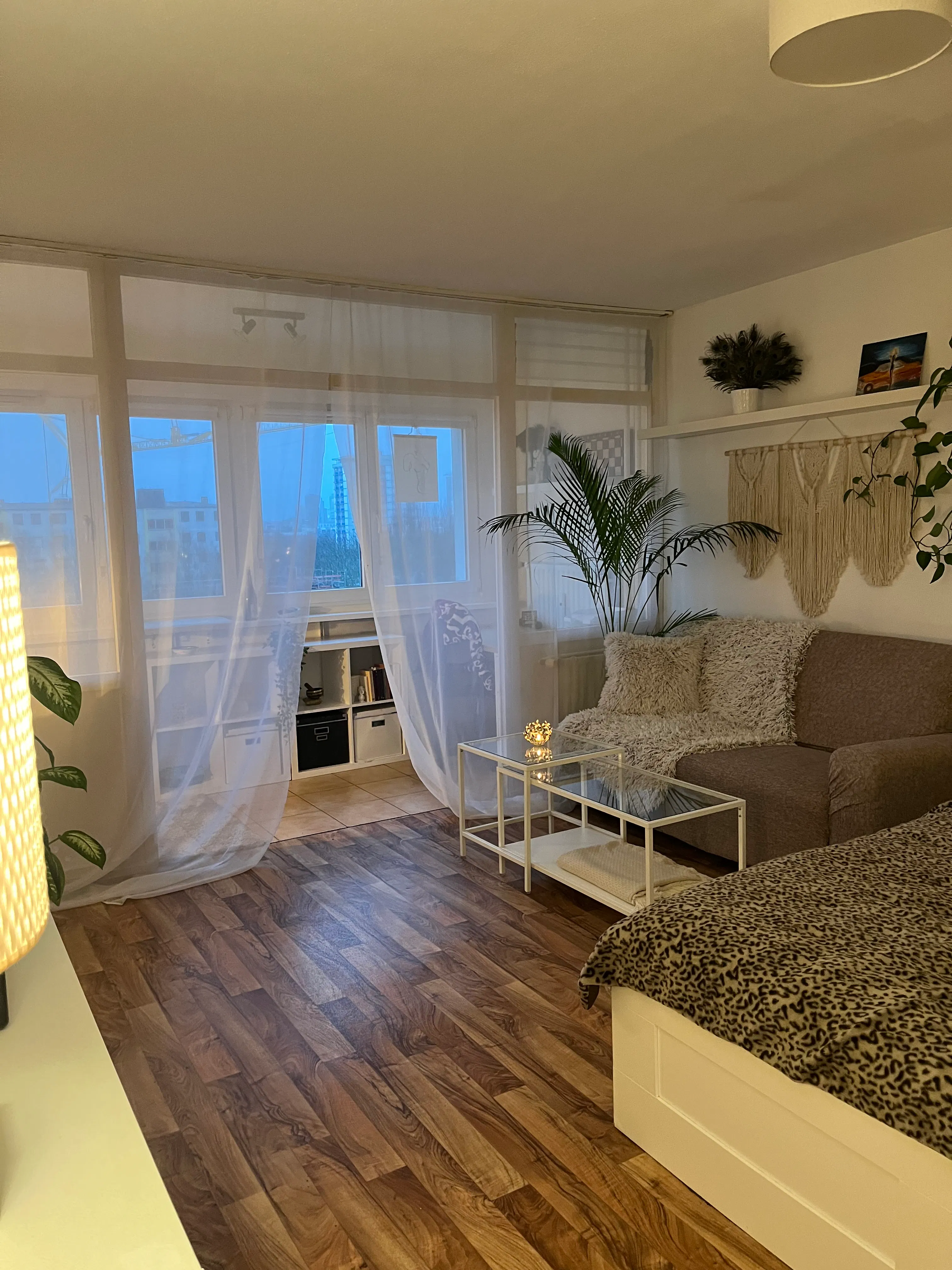 Die Wohnung ist hell, modern geschnitten und ideal für alle, die eine gemütliche und super zentral gelegene Wohnung in Berlin suchen. Dadurch dass sich die Wohnung im 7. Stock (mit Fahrstuhl) befindet, kann man hervorragend dem Großstadtlärm entfliehen und zur Ruhe kommen. Die große Fensterfront sorgt für viel Licht und man hat einen atemberaubenden Sonnenuntergangs Blick über Berlin! :) Super zentral gelegen in Mitte/ Kreuzberg - 4 min Gehweg bis U Moritzplatz (U8) & U Prinzenstraße (U1) - Kiosk, Späti, Bäckerei & Aral Tankstelle direkt vor der Haustür - Netto, Lidl, denns Biomarkt, Edeka ist alles in 5min Fußweg Umkreis :...