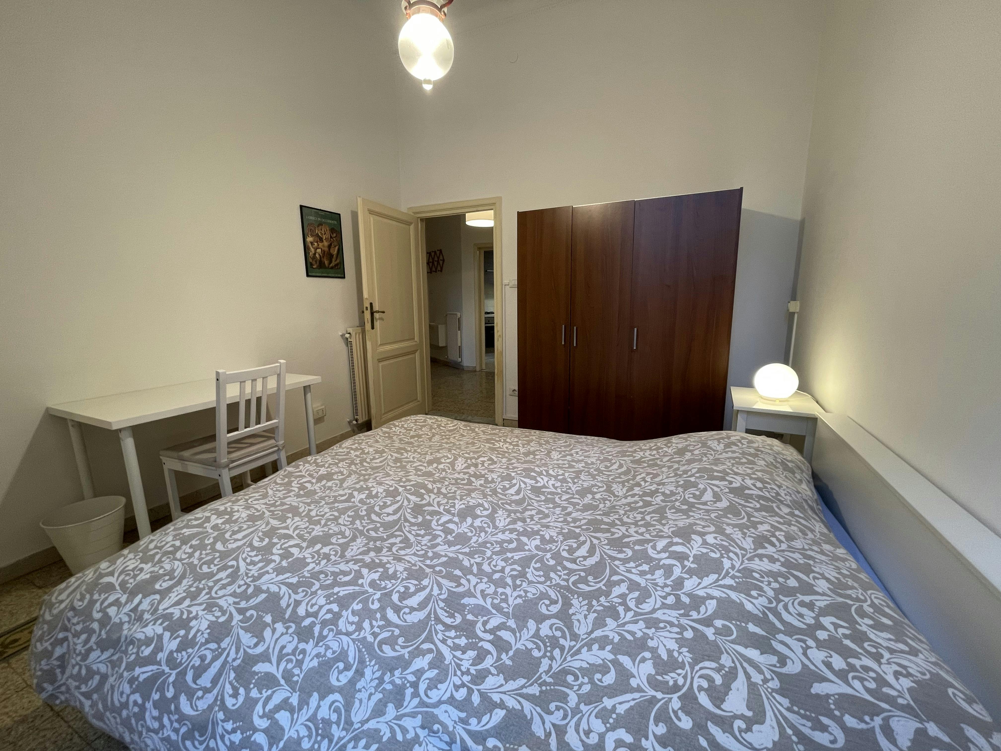 Bright and comfortable room, composed of a double bed, a wardrobe, a desk, and a chair. The room is situated in an apartment on the ground floor with three other bedrooms, one bathroom with a shower, and a fully equipped kitchen with access to a private courtyard. The apartment will be shared with 4 to 5 other roommates. The bills for water, gas, electricity, and heating are included. Washing machine, oven, microwave. Area well served by public transport, supermarket 200 meters. Cleaning of the apartment: the tenants are required to keep the apartment clean and in good condition. The staff will regularly check that this condition is respected; a cleaning lady will come to clean all the common areas (kitchen, bathroom, corridor, courtyard). In case the cleaning lady finds the apartment in a state of excessive dirt and disorder, the extra time will be charged to the tenants: the cost is €15/hour to be divided between each tenant of the apartment. Periodic sanitization: periodically, the common areas and on request, the rooms of each tenant will be sanitized with treatment that cleans, disinfects, and deodorizes the environment, eliminates the microorganisms, bacteria, mold, and viruses, and restores an unpolluted environment. The technology is particularly appropriate for people who suffer from respiratory allergies. Payment details: Initial payment: One month's rent is due upon booking. Upon arrival: A refundable deposit, to be returned at departure (adjusted for any potential damages), along with an administrative fee (a one-time charge for the contract's duration, covering insurance, emergency assistance, contract registration costs, condominium, waste tax, and consultations as needed). Monthly payments cover: Rent, utilities, high-speed Wi-Fi (Fibra), condominium fees, etc. Ideal choice for students wishing to live near the city center in a calm neighborhood. Supermarket at 200 metres. Tram stop in front of the building...