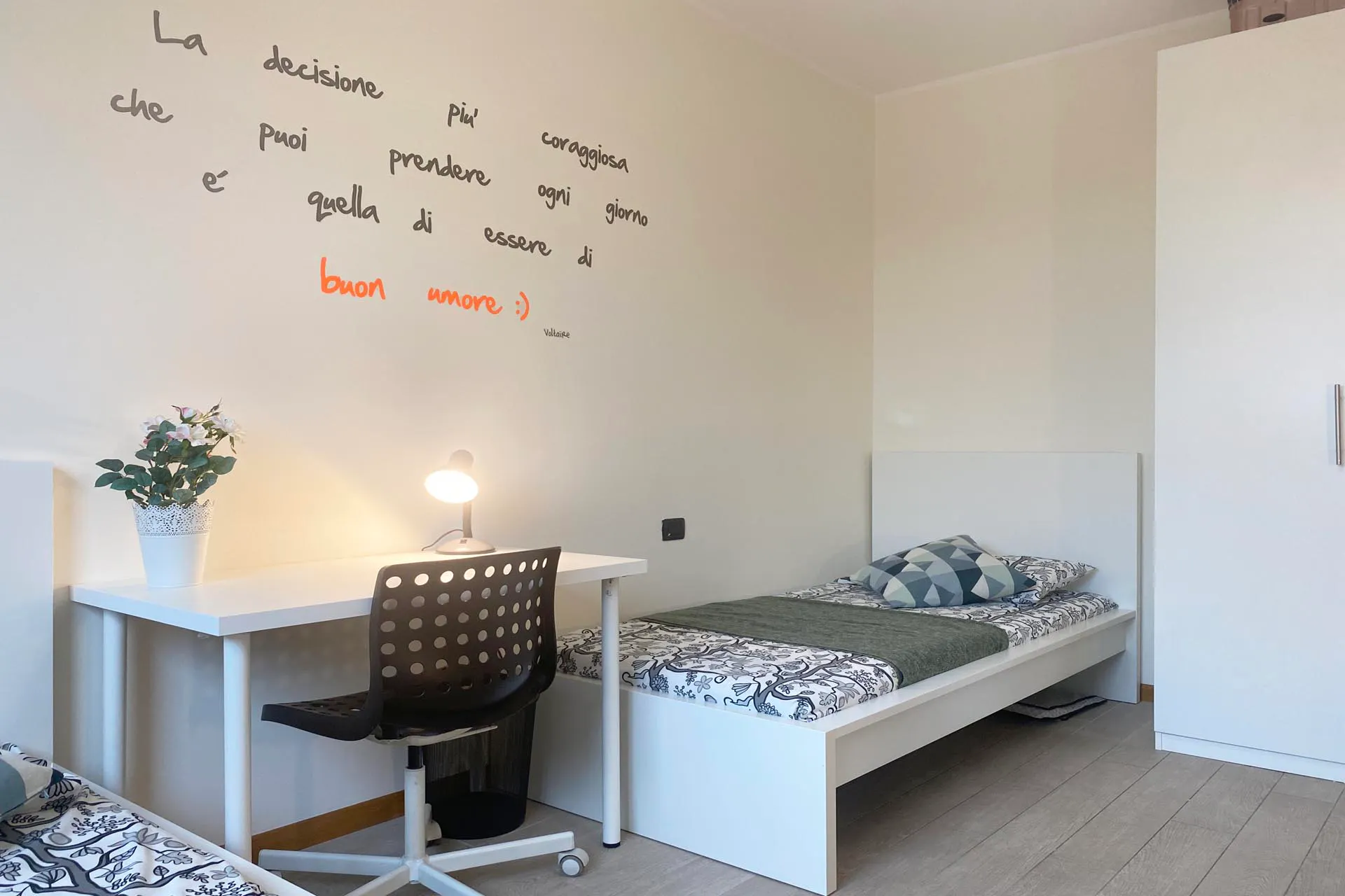This apartment is located on the 12th and 13th floor of staircase 6 of the elegant building of recent construction called “Residenza Arcimboldi”. It consists of a large entrance hall with living room and kitchen, 3 bedrooms and 2 bathrooms. The building is located in the prestigious condominium called Residenza Arcimboldi, in the university area of Bicocca. Adjacent to the Arcimboldi Theater, in a central position with respect to the various universities of Bicocca. Students can easily reach it by walking. Resdenza Arcimboldi is a new and elegant residential complex with a concierge. The center of Milan can be reached in a short time via the purple metro line M5 (Bicocca station) and public trams. Through the city train of the Greco Pirelli station (at 300m) it is possible to reach in a few minutes Central Station, Lambrate Station and Garibaldi Station. Close to the building there are supermarkets, shops, bars, restaurants and takeaways. In an apartment located in viale Dell'innovazione 22, this shared room is reserved for university students, interns or young workers. Fully furnished, it is equipped with two single beds, each one with bedside table and lamp, two wardrobes, two bookcases, two desks and chairs. Kitchen, living room and bathrooms are shared with the other tenants of the apartment. Includes utilities: building expenses, heating, water, electricity, internet, garbage tax, periodical cleaning services of common areas; utilities adjustments excluded. RENTAL CONDITIONS: -BI-WEEKLY CONTRACT: If you move in during the 2nd half of the month, you will only pay half-a-month’s rent for that month. If you move out during the 1st half of the month, you will only pay half-a-month’s rent for that month. I always rent from the first day the room is available. - ALL - INCLUSIVE Monthly rent: water, gas, electricity, wi-fi, condominium fee all included! - DEPOSIT that it will be given back to you at the end of your stay. - CONTRACT REGISTRATION (one time fee): depending on the room you are interested in. Please check the field OTHER to see this fee. - ONE TIME ADMIN FEE: We are a professional property management company and for this reason we also include initial and final cleaning of the room; cleaning of common area of the flat every two weeks; 2 bed-linen; contract activation and termination: professional assistance service and property maintenance during your stay: we will take care of everything! Do you want to finish your contract earlier than agreed? Don’t worry, please inform us and if you find a substitute (of course we can also help you!), you can leave without any type of penalties. Please be aware that HousingAnywhere is an online booking platform. Therefore exchanging contact details and offering viewings is not possible. If you would like to reserve this accommodation, send me a booking request or a message and please mention your age and occupation....