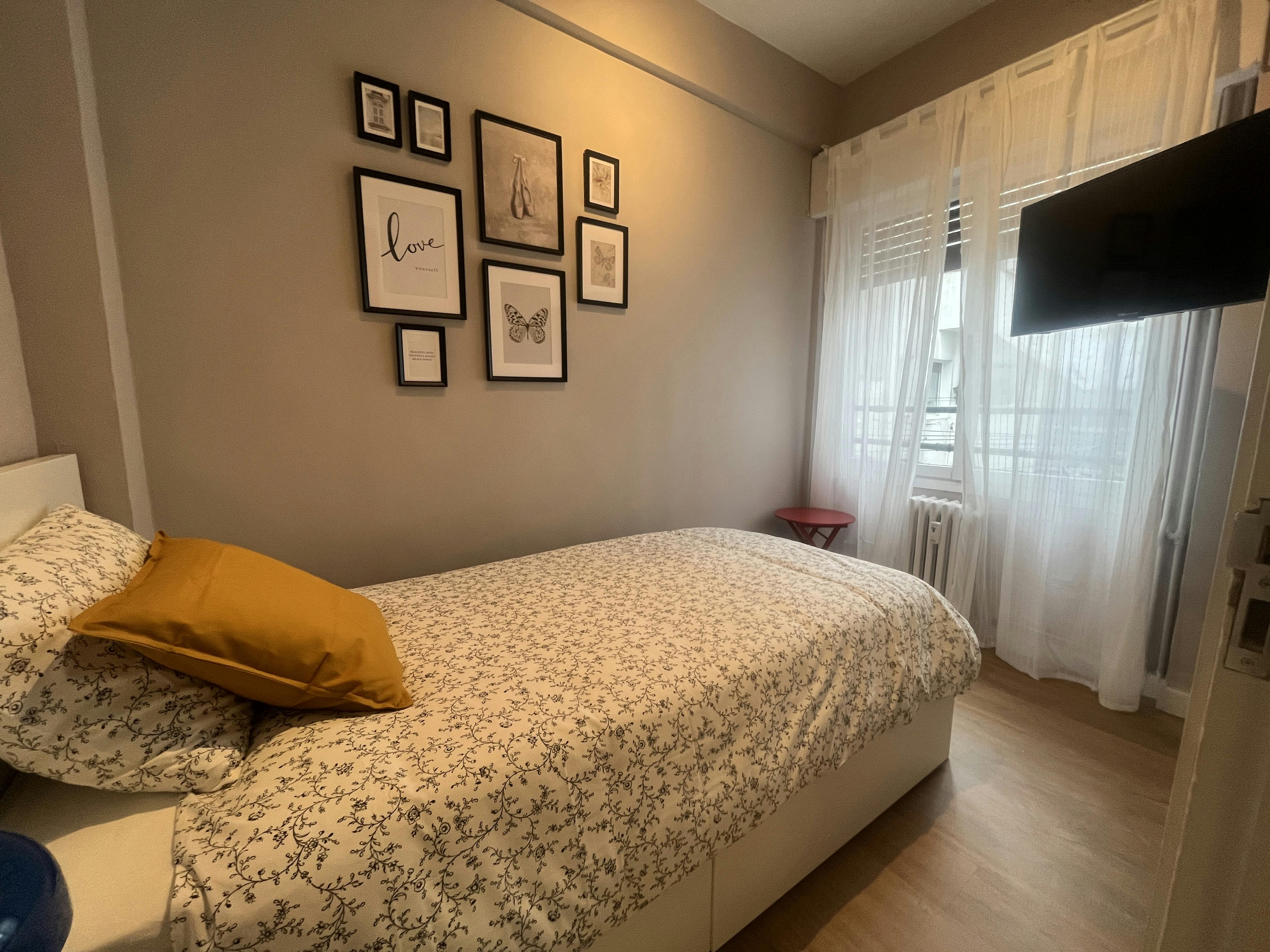 Se alquila habitación en vivienda compartida. La vivienda se encuentra en un a de las mejores situaciones en pleno Ensanche de Bilbao, entre los barrios de Indautxu y Abando. Se trata de un piso reformado, con aspecto renovado y unos acabados y espacios que te harán disfrutar del privilegio de vivir en una de las mejores zonas de la ciudad. La vivienda cuenta con un soleado balcón desde el cual poder disfrutar de un desayuno, un café o un momento de relajación y lectura. Se trata de una amplia vivienda con 170m2 distribuida en 7 habitaciones totalmente equipadas, 3 baños completos de gran tamaño y recién reformados así como una cocina totalmente equipada con mobiliario y electrodomésticos nuevos. El edificio cuenta con calefacción central y agua caliente - Cama individual (90cm) con 1 mesilla de noche y lámpara - Armario de gran capacidad - Cómoda de seis cajones - Escritorio doble - Cerradura privada - Smart TV 4K 32" - Estanteria -Baño privado El alquiler incluye todos los gastos así como un servicio semanal de limpieza de las zonas comunes...