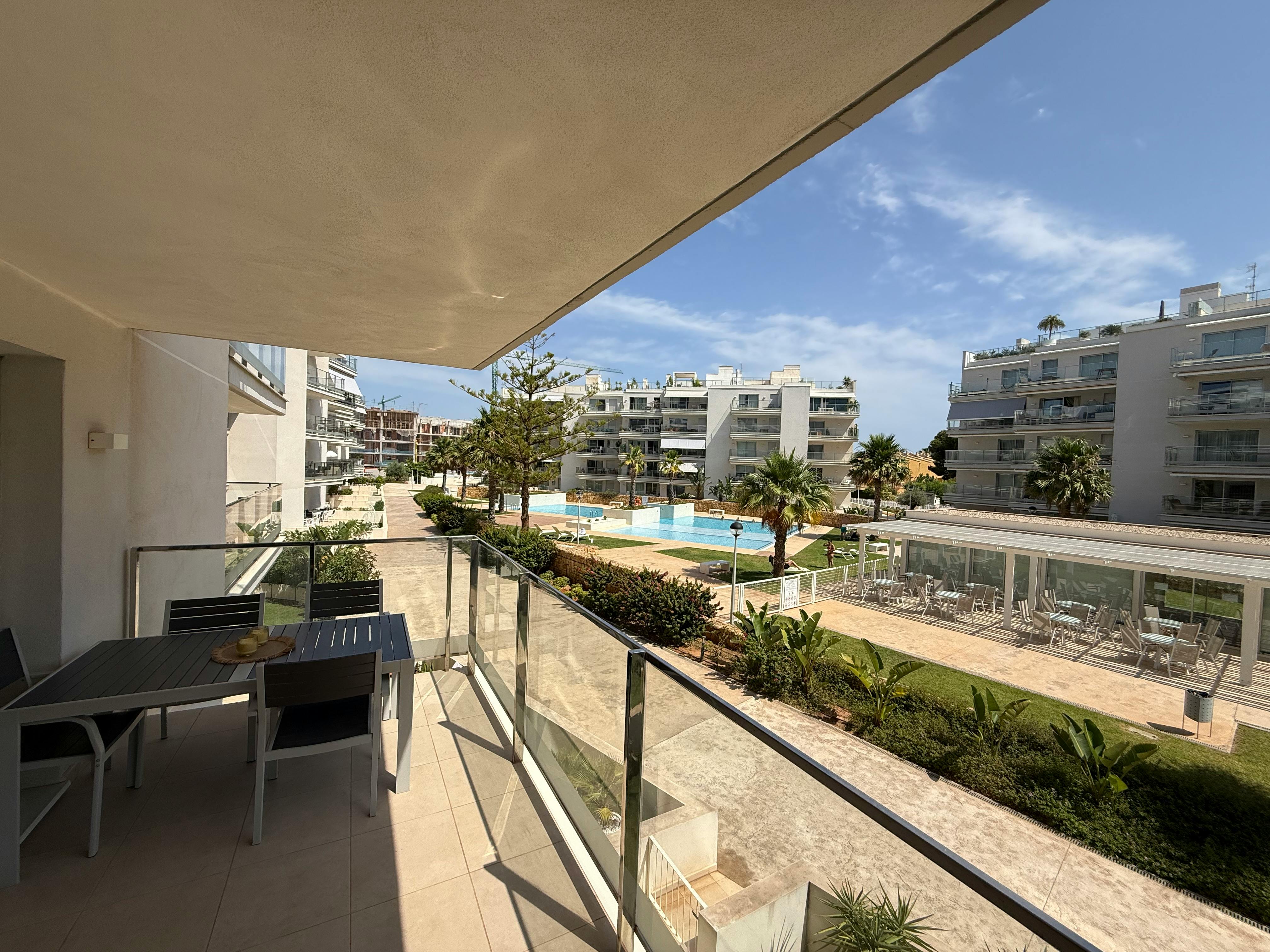 New apartment with two double bedrooms and two full bathrooms. Living room with open kitchen and a spacious terrace to enjoy the good weather in Denia. Community features include swimming pools for adults and children, a gym, a playground, and private parking. Located in a unique setting, just a few meters from the town center with easy access to the beaches...