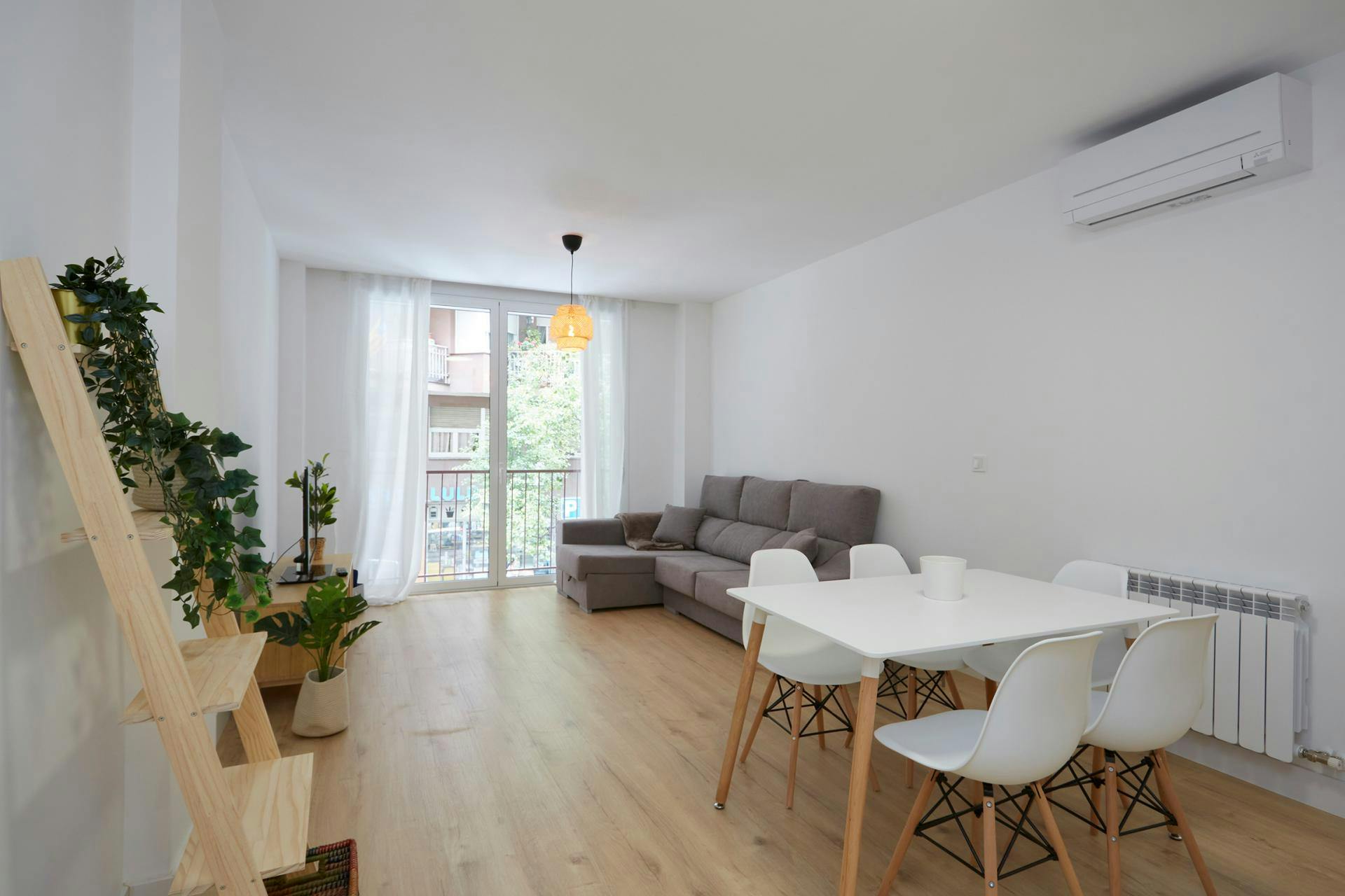 MONTHLY RENTAL Spacious, cozy and functional 95m2 apartment for seasonal rent in the Sants Montjuïc neighborhood, Barcelona. This apartment is fully equipped and furnished. It consists of a very well lit living-dining room , an independent kitchen equipped so that you can prepare your best dishes, two complete bathrooms with a shower and three bedrooms , two doubles and one single. This apartment is equipped with air conditioning in every room, gas radiator heating and internet connection. This area is familiar and is full of lifelong neighbors, terraces in the squares and a local atmosphere. The area has all the essential services very close : supermarkets, local shops, clothing stores, bars or restaurants. The apartment is very close to public transport, specifically the Foneria L10S metro stop The following information is provided for informational purposes only and is only applicable to primary residence contracts, not to seasonal rental contracts. Price of the last rent: 1695.00 €/month. Energy certificate:E. Owner is a large holder. Update of the income tax according to IRAV. ADMINISTRATION FEE: 1 month's rent + 21% VAT LOCAL TAXES (I.T.P.): 0.5% of the total reservation (Monthly cost calculated as "other" in the Rent summary. The total amount will be collected before the check-in) BOOKING PROCESS: After the reservation is confirmed, you will be required to pay the remaining payments before the handover of the keys. EARLY-BOOKING POLICY (requests 2 months in advance) If you are planning to book an occupied apartment more than 2 months in advance, we cannot confirm the availability yet (The current tenants have the right to extend their stay). Please, get in contact with us 2 months before your move-in date. NO DISCOUNTS POSSIBLE BOOKING PROCESS: After the reservation is confirmed, you will be required to pay the remaining payments directly to the advertiser before the handover of the keys...