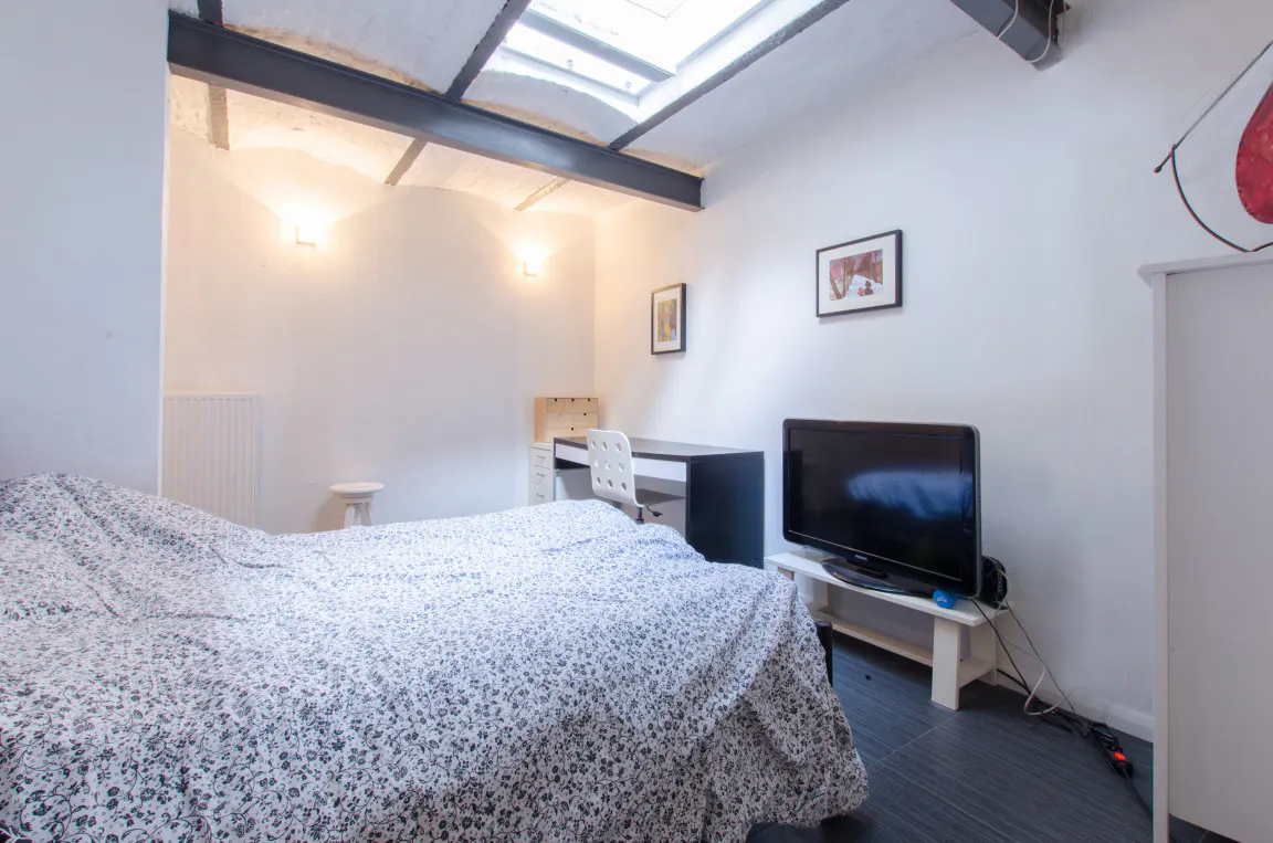 Rez Ch2 Chambre meublée située côté arrière avec salle de douche privative située au niveau supérieur de l’appartement souplex. L'appartement est composé de deux chambres meublées, de 2 salles de douche, d’une toilette, d’une cuisine ouverte, d’un séjour, et d’une grande terrasse côté jardin. Situé à côté du parc forestier et de l'avenue nationale de la forêt, desservi par le tram 97 et le bus 48....