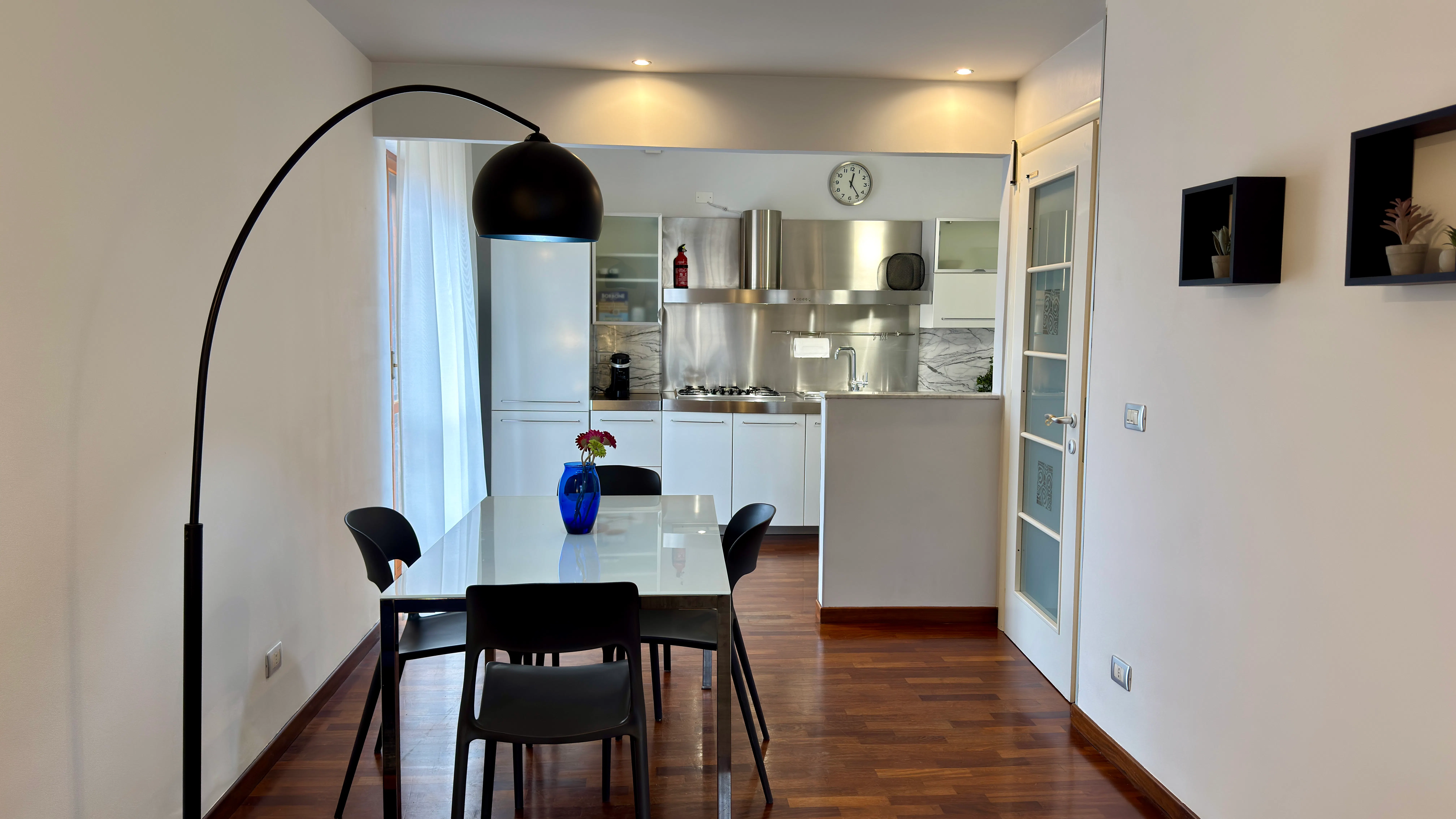 L'appartamento ha una superficie totale di 85 metri quadrati. Ci sono 2 camere da letto con letto matrimoniale e ampi armadi e cassettiere. La zona living è spaziosa e comprende una zona divano con tv, una zona pranzo e una zona cucina completamente attrezzata. Ci sono due ampi balconi, uno che serve la zona living, arredato con tavolino e sedie, l'altro sulla zona notte. Nelle immediate vicinanze ci sono attività commerciali per ogni esigenza: supermercato, farmacia, panificio, take away, ufficio postale, lavanderia a gettoni, parrucchiere e barbiere, bar, pizzeria, pub eccetera, tutte raggiungibili a piedi. L'appartamento è in contesto condominiale con parcheggio all'interno dell'area condominiale chiusa con cancello automatico. Le utenze e il condominio sono inclusi nel prezzo dell'affitto. Viene richiesto un minimo di permanenza di 1 mese/i. Ammessi animali solo di piccola taglia...