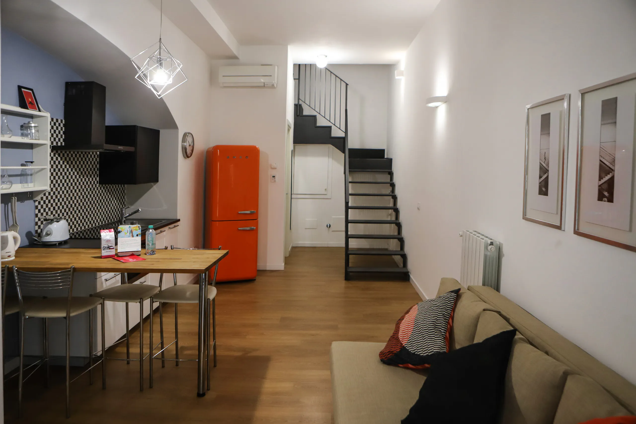 Il Loggiato - Appartamento Sole Beautifully renovated apartment located in a historic building in the center of Naples, within walking distance of all the main points of interest in the city.. . Overlooking a lovely courtyard, our Sole Apartment spreads out on two levels: on the first floor you will find the entrance with a living room equipped with a double sofa bed, a kitchen and a bathroom with shower, while on the upper floor there is a large bedroom with a double bed and a sofa (convertible into a single bed if necessary)... Equipped with all the comforts, staying here will make you feel at home even on vacation.. . *Upon arrival or a few days before arrival it may be required to pay a tourist tax, which varies according to local regulations. You will find your reservation details within the Guest Area of (hidden).. . "When you go to Naples you cry twice: when you arrive and when you leave," they say. Naples is a unique city, to be experienced by walking through the alleys, smelling the scent of gastronomic delicacies in the air, and admiring its rich artistic and monumental heritage.. Naples has a distinctive culinary tradition for its famous Neapolitan pizza, and the art of its pizza makers has been declared an intangible heritage of humanity by UNESCO. . Strolling through Spaccanapoli, the street that cuts the city in half, one traverses its thousand-year history thanks to the presence of ancient palaces and churches, such as the Duomo di Napoli and the Maschio Angioino. If there is one place that symbolizes Naples, it is Piazza del Plebiscito, now a symbol of the new 'Neapolitan Renaissance' where tourists come to admire its grandeur and two jewels: the neoclassical colonnade of the church of San Francesco di Paola and the Royal Palace. Today it is also possible to visit 'the underground city', or the so-called 'belly of Naples', which served the Neapolitans as a refuge during the bombing raids, where tourists can walk through the Greco-Roman aqueduct, the air-raid shelters, and finally visit the War Museum.. Particularly to be noticed is the San Severo Chapel, which houses the sculpture of the Veiled Christ, one of the most fascinating and mysterious works to be seen in Naples, the work of Giuseppe Sanmartino. . . Naples Capodichino airport is located only 6 kms away from our apartment...
