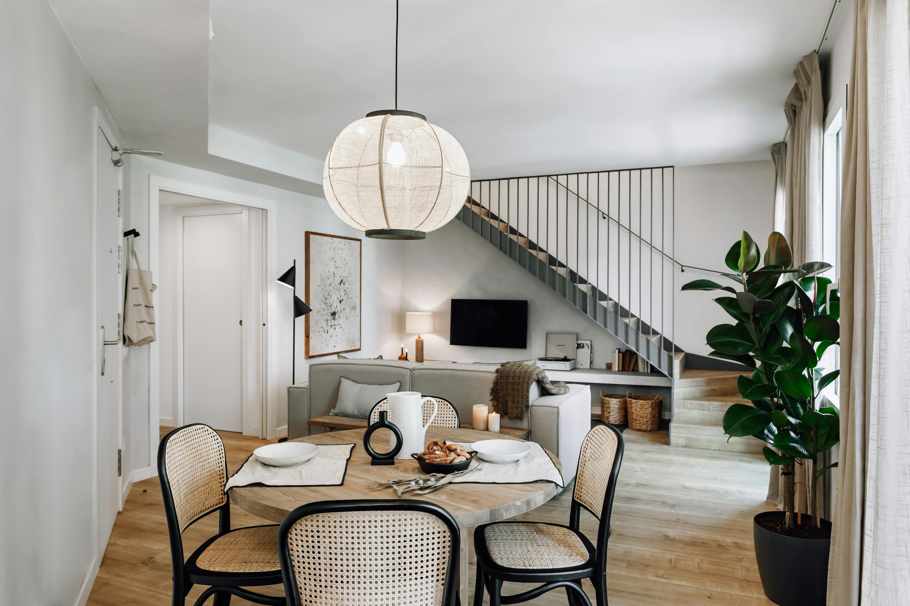 Inspired by the mountains, Campro combines modern design with traditional Catalan architecture. Located in Sant Antoni, guests will find a variety of trendy tapas bars and boutiques along the tree lined streets. When the day is finished, come home to Campro for absolute indulgence. Not only does this duplex feature 3 bedrooms, there are also 3 bathrooms. All bedrooms in this apartment have been uniquely decorated and are on the upstairs level. The first bedroom has a queen size bed and an ensuite bathroom. The second a queen size bed and balcony access, and the third a single bed with balcony access as well. All bathrooms have beautiful Catalan tiled floors, with one detached bathroom being located upstairs and the other by the entrance. The bottom level of the duplex has the living room and kitchen. The living room has light streaming in from the balcony sitting area, allowing you to take in the sights and sounds of Barcelona from the comfort of your own home. The wooden furniture and dining table add to the mountain theme of the apartment. If it gets too warm in the summer, Campro has air conditioning for maximum comfort. A dedicated workstation sits behind the dining table, perfect for any remote working needs. The kitchen is complete not only with all appliances, but also utensils and plenty of space to prepare a meal. Fully furnished, this home comes with everything you need, including bedding and linens. *We welcome pets, fees are subject to apply. Guests will be informed of any additional charges in the final contract. *We cannot be held liable for any noises (construction, or street noise) done outside the apartment. We also cannot be liable for any rooms without air conditioning (all the rooms with air conditioner will be explicitly explained in our description). We will not accept any reservation cancellations or refund requests related to these two issues. *Our in-house design team expertly selects all apartment furniture and decor to ensure the highest level of quality and comfort. As part of consistent home upkeep, design improvements, and photo staging, there may be minor differences in furnishings seen in the photos and what you find in the apartment. Inquire with a sales agent for any questions or doubts. *This accommodation may only be used for stays longer than 31 nights for personal purposes such as holiday, recreational, or leisure. We may request documentation proving your permanent residence and the reason for your stay in Catalonia, and may cancel the reservation if it does not meet the legal requirements. The information provided may be submitted to the relevant registry and/or administrative authority in accordance with Catalan regulations....