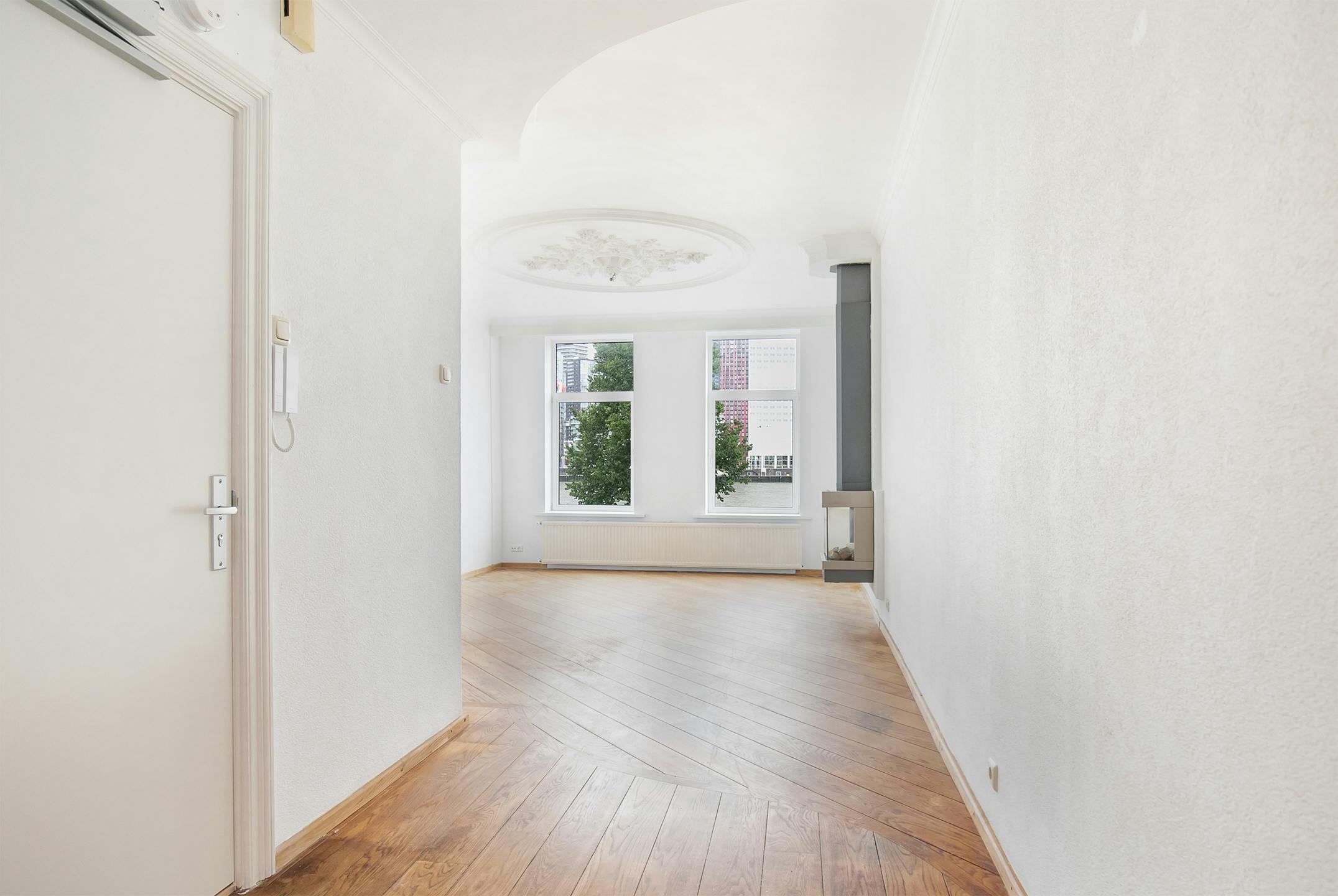 Prachtige 3-slaapkamer maisonettewoning met groot dakterras en hoogwaardige afwerking op één van de mooiste plekjes van Rotterdam. Vanaf de woonkamer kijk je uit over de Maas en de skyline van Rotterdam, je kunt zowel de Erasmusbrug als de Willemsbrug zien. Deze woning is bij uitstek geschikt voor een gezin. Het Noordereiland is uitgegroeid tot één van de hipste plekken van Rotterdam, je komt hier tot rust door de dorpse sfeer terwijl het wel super centraal gelegen is nabij het bruisende centrum van Rotterdam. Diverse supermarkten, hippe koffiebars en verscheidene restaurants liggen binnen handbereik. De Maaskade is vorig jaar getransformeerd tot een groene kade waar de nadruk is gelegd op klimaatadaptatie, waarbij er diverse bomen en planten zijn geplant om de kade te vergroenen. De bereikbaarheid van het Noordereiland is uitstekend. De Koninginnebrug is de aansluiting naar Rotterdam-Zuid en de Willemsbrug brengt je naar naar het stadscentrum. De opstapplaatsen voor de watertaxi, de Markthal, de Oude Haven, de markt, het Luxortheater en Entrepotdok liggen op loopafstand. De Kop van Zuid en Katendrecht, met haar Fenix Food Factory en Foodhallen zijn eveneens in de directe omgeving gelegen, net als vele kantoren en grote bedrijven. Uitvalswegen A16, A15 en A20 zijn goed bereikbaar. A16 is bereikbaar in 10 minuten, A15 en A20 in 15 minuten. Metrostation Blaak is op loopafstand, maar bijna voor de deur stopt bus 32. Die brengt je daar in 2 minuten. Indeling Gesloten portiek met gedeelde trapopgang naar de eerste verdieping. Eerste verdieping Ingang van het appartement in een ruime verdieping met woonkamer en open keuken over de gehele lengte van de woning, voorzien van een houten parketvloer. De woonkamer aan de voorzijde heeft een siergashaard en geeft een prachtig uitzicht over de rivier en het stadscentrum. De keuken is voorzien van diverse inbouwapparatuur, waaronder koelkast en aparte vriezer, vaatwasser, oven, magnetron en 4-pits gasfornuis. Aan de achterzijde van de verdieping bereikt u via dubbele openslaande deuren het ruime terras (ca. 5,2 x 4,4 meter) op het Zuid-Oosten. Ook op deze verdieping bevindt zich het toilet, en een open trap naar de tweede verdieping. Tweede verdieping Overloop die toegang geeft aan de drie slaapkamers en de badkamer. De hoofdslaapkamer (ca. 4,2 x 3,1m) ligt aan de achterzijde van de woning en heeft een loggia van ca. 1,3 meter over de gehele breedte. Ook is hier de opstelplaats van de wasmachine in een inbouwkast. De tweede (ca. 5,0 x 2,2m) en derde (ca. 4,0 x 1,7m) slaapkamers liggen aan de voorzijde van de woning. De tussengelegen badkamer is voorzien van en ligbad, aparte douchecabine en een dubbele wasbak. Balkon Dakterras van ca. 5,2 x 4,4m aan de achterzijde van de eerste verdieping, op het Zuid-Oosten gelegen en voorzien van stroompunten en een wateraansluiting. Loggia van ca. 4,3 x 1,3m aan de achterzijde van de tweede verdieping, bereikbaar via de hoofdslaapkamer. Bijzonderheden - Geschikt voor een gezin, geen woningdelers; - Woonoppervlakte; ca 115 m2; - Oppervlakte dakterras ca. 23 m2; - Beschermd stadsgezicht; - Geen huisdieren toegestaan; - Huurovereenkomst voor onbepaalde tijd met een minimum van 12 maanden; - Kale huur € 2.500,- per maand; - 2 maanden borg;...
