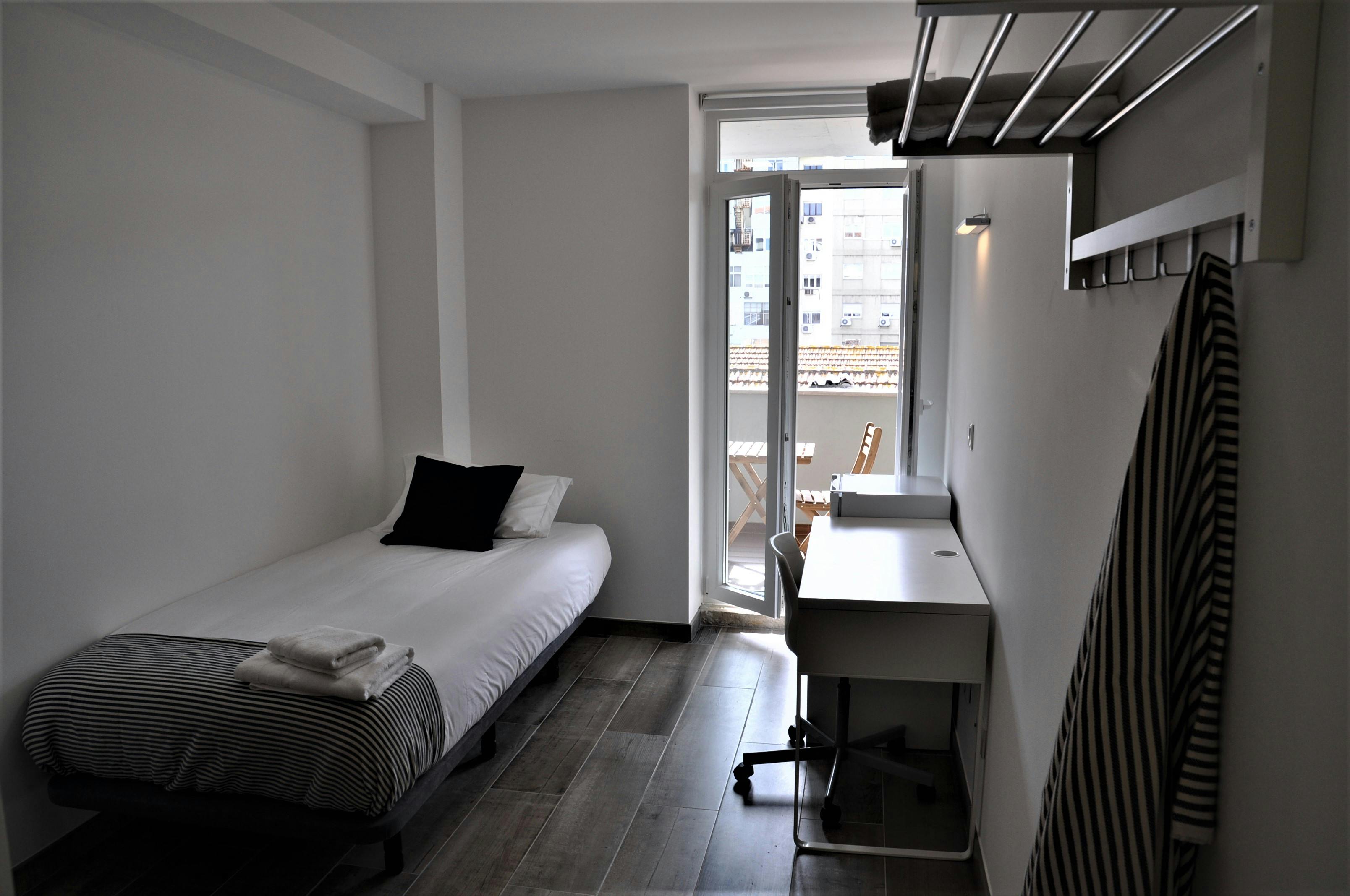 ROOM Our rooms come fully furnished with a premium mattress, a wardrobe, a desk as well as a chair. Of course, pillows, bedsheets and small items such as bedside table and a desk lamp are always included. All bedrooms have a bed and depending on your needs, you can also have a balcony or even a shared or private terrace. APARTMENT Its more than just a co-living building, its simply a very big, comfy place to stay. You will find a place to store your food, shared bathrooms and many more amenities. A fully equipped kitchen is also part of the accommodation, including an oven, fridge, washing machine, and other small appliances. PROPERTY This co-living building is perfect if you love to have your own space, but also want to live in a community full of people. The building has 36 rooms, meaning you have all these people to connect with and share your experiences. Just one minute walking distance, there is the famous Cinema City Campo Pequno where you will find all sorts of things you are looking for. The next metro station is located within five minutes walking distance as well (same as various bus stations)....