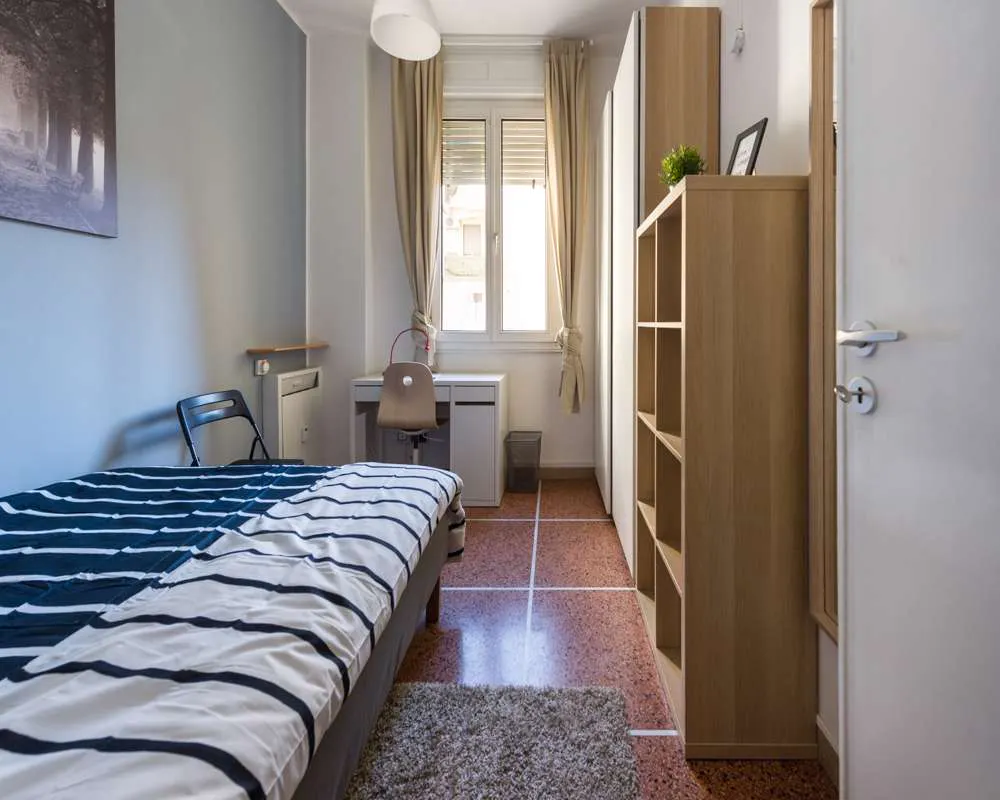 Discover this cozy room in the heart of *Centro Storico* , perfect for students and young professionals alike. This room measures 11 square meters and is part of a spacious flat featuring 5 rooms and 2 bathrooms. Enjoy modern amenities including an *elevator* , *WiFi* , *television* , *washing machine* , *dishwasher* , *oven* , and *heating*. Getting around is easy with nearby *Porta Lame* (2 min walk) and *Caffè Saphira* (2 min walk) for your daily coffee fix. The *Biblioteca del Dipartimento di Discipline della Comunicazione dell'Università degli Studi di Bologna* is just a 6 min walk away, making it ideal for study sessions. Join a vibrant community of like-minded individuals in this welcoming space. Whether you're a student or a professional, this room offers a perfect blend of comfort and convenience. Ready to move in? Schedule a viewing today! Current tenants: 1: 24, Male, Student 4: 24, Female, Student 5: 23, Male, Student Please be aware that HousingAnywhere is an online booking platform. Therefore exchanging contact details and offering viewings is not possible. If you would like to reserve this accommodation, send me a booking request or a message and please mention your age and occupation. I look forward to talking to you! CONTRACT Please, note that to all our listings we apply fortnightly contracts. This means that If you check-in during the first half of the month, you will be charged for the full month. If you check-in during the second half of the month, you will only be charged for the second half. The second half of the month starts on the 16th. If you check-out during the first half of the month, you will only pay until the 15th of that month. If you check-out during the second half of the month, you will be charged the full month....