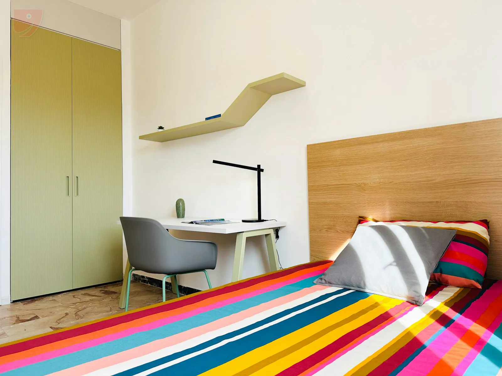 BOOK NOW SAVE IMMEDIATELY Secure with €100, and pay the deposit within February 15th + save €150 on the first month by renting until August 31st! Walk-in Closet and French Bed: Space and Style! Room: This well-designed room combines comfort and practicality, creating a welcoming and functional environment. It has a queen-size bed with orthopedic mattress and mattress topper for optimal rest. Next to it, a round coffee table offers space for personal items. The walk-in closet, equipped with shelves and clothes rails, together with a chest of drawers, offers a complete organizational solution. A 135 x 60 cm desk and shelf increase the functionality of the workspace, complemented by a comfortable BABILA Pedrali chair. Apartment: This apartment offers a welcoming and well-organized environment. With 9 rooms and 3 bathrooms, it is ideal for sharing between students or young professionals. The eat-in kitchen is perfect for preparing meals together, while the living area represents a common space where you can relax or socialise. Modern conveniences such as a washing machine, dryer, dishwasher and Wi-Fi are present, making daily life simple and enjoyable. The minimalist style of the furnishings ensures functionality. We're a bit old-fashioned and still prefer deposits like the good old days, so we require the deposit payment to be made to the property manager's bank account immediately after completing the reservation process on HousingAnywhere...