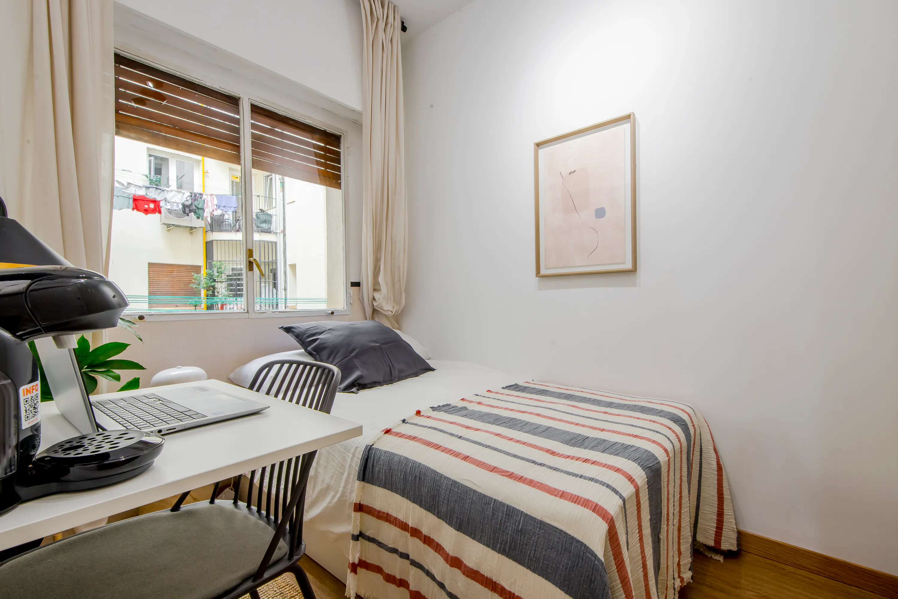 💢💢💢 This bedroom comes with: ✔Exterior window 🛏Type of bed: 105x190 cm We present you a comfortable room in Calle del Poeta Joan Maragall 22. The property consists of: 2 bathrooms, fully equipped kitchen (fridge, oven, microwave, ceramic hob, utensils) and 8 bedrooms. The bedroom has bed with canapé, mirror, wardrobe, desk, smart tv so you can enjoy your favourite channels and streaming platforms. The price includes: - Maintenance technician - Contract management - Cleaning of the common areas once a week - Flexibility of contracts - Rooms with high quality standards - Lockable door - Customer service - All utilities included (water, electricity, gas and wifi) - Kitchen utensils. Unbeatable location near the Ministry of Defence of Spain, so it is an area of high security and tranquility, a few meters from the emblematic Paseo de la Castellana, near the Metro stations of Santiago Bernabeu (Line 10) and Cuzco (Line 10) and a few streets from the Santiago Bernabeu Stadium and the Shopping Centre, Metro and RENFE of Nuevos Ministerios. There are also several bus stops, supermarkets, shops, gyms and health centres nearby; all of this together with a spectacular social and cultural life. We are waiting for you! 🔔Administration fee must be paid by cash (Other types of payments, please contact us) 🔔Profile: 18-35 years (older ages may be accepted case by case) 🔔Weekly cleaning of rooms and common areas is included in the rent 💢💢�...