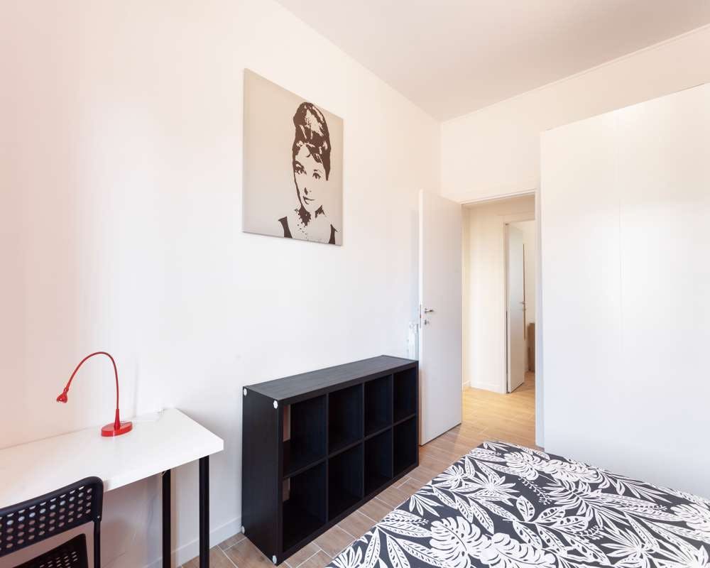 Single room in a shared apartment, composed by 8 bedrooms and 3 bathrooms. Of about 16 sqm with a one and a half bed and a work station. With wifi, dishwasher, washing machine. Energy class: E, IPE 102.85 Kwh/Sqm year. Current tenants: 1: 27, Male, Student 2: 25, Female, Worker 3: 24, Female, Student 4: 25, Female, Student 6: 27, Female, Worker Please be aware that HousingAnywhere is an online booking platform. Therefore exchanging contact details and offering viewings is not possible. If you would like to reserve this accommodation, send me a booking request or a message and please mention your age and occupation. I look forward to talking to you! CONTRACT Please, note that to all our listings we apply fortnightly contracts. This means that If you check-in during the first half of the month, you will be charged for the full month. If you check-in during the second half of the month, you will only be charged for the second half. The second half of the month starts on the 16th. If you check-out during the first half of the month, you will only pay until the 15th of that month. If you check-out during the second half of the month, you will be charged the full month....