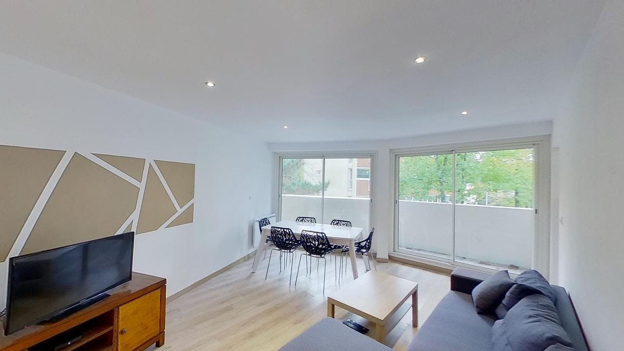 Notre agence vous présente cet appartement de 4 chambres en colocation de 101 m2 au 8 Allée Louis Vierne Saint-Herblain (44800). 😎 LA CHAMBRE La chambre est équipée d'un lit double, d'une table de nuit, d'un bureau et d'une commode. Le petit plus de cette chambre est l'accès au balcon. 🏠 LES ESPACES COMMUNS Cet appartement s'organise de la manière suivante : Une entrée avec un placard pour y déposer vos manteaux Un salon avec un canapé, une table basse, un meuble TV ainsi qu'une télévision et une table à manger Une cuisine avec un four, un micro-ondes, un lave-vaisselle, une plaque de cuisson, une hotte, une machine à café et un grille-pain Un cellier avec une machine à laver et un aspirateur Une salle de bain avec une baignoire, un meuble vasque avec miroir, un sèche-serviette et un meuble à rangement Des toilettes séparées Il y a quatre chambres dans ce logement Ce T5 se situe au 1er étage. 🌳 LES EXTÉRIEURS Le bien comporte un balcon qui permet de gagner en confort et en espace. 📍 LE QUARTIER Situé à Saint-Herblain, ce quartier résidentiel offre un cadre de vie paisible et agréable. Vous trouverez à proximité de nombreux commerces, restaurants, et cafés, ainsi que des parcs et des espaces verts pour les promenades et les loisirs en plein air. Le quartier bénéficie également de la proximité du centre commercial Atlantis, qui offre une grande variété de boutiques et de services. 🚌 LES TRANSPORTS ➢ Lignes de bus à proximité : Les lignes de bus 59 et 91 desservent ce quartier, avec des arrêts à environ 5 minutes à pied du logement. ➢ Ligne de tram : La ligne 1 du tramway est accessible en environ 10 minutes à pied. ➢ Durée du centre-ville à pied ou en transport : Le centre-ville de Nantes est accessible en environ 20 minutes en tramway ou en bus. Bail individuel à la chambre. Pas de caution solidaire. Chacun est libre de partir quand il veut sans se soucier des autres colocs, dès le moment où il respecte un mois de préavis. Eligible aux APL. Les informations sur les risques auxquels ce bien est exposé sont disponibles sur le site Géorisques : (hidden) Montant estimé des dépenses annuelles d'énergie pour un usage standard : 2203 € par an. Prix moyens des énergies indexés sur l'année 2021,2022,2023 (abonnements compris...