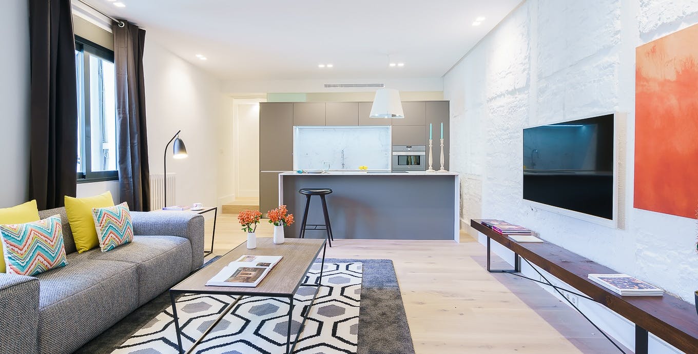 Promos by length of stay in the final price: -Booking + 4 months: 5% discount -Booking + 9 months: 7,5% discount -Booking + 12 months: 10% discount Please contact us to apply for the discount in your booking request! - Utilities included in the price up to 120€ - 180€ depending of the apartment. - Some apartments pets are allow by request. There is an extra charge for pets. Please contact us to know the supplement and availability! -- This property is located amongst the luxury and glamour of the city, in the heart of Madrid. The neighborhood of Salamanca has wide tree-lined streets, high-end boutiques, and a wide variety of restaurants. This area is known as the most solicited and exclusive area of the Spanish capital. Recoletos II is only steps away from the famous green space Retiro Park, which offers year-round leisure and entertainment activities in a beautiful and perfect natural escape in the center of Madrid. Transport links are also diverse and plentiful in this area if you wish to easily access the rest of the city. Contemporary in style, this two-bedroom apartment is the best option for families or a small group of friends looking to discover the charm of the city. With touches of color, design furniture, and a spacious layout, this apartment is the perfect combination of comfort and elegance. The open-floor plan gathers the living, dining room, and fully equipped kitchen into one combined space. This space is carefully tied together with a scheme of neutral colors and subtle pops of color like the geometric rug and the paintings on the walls...