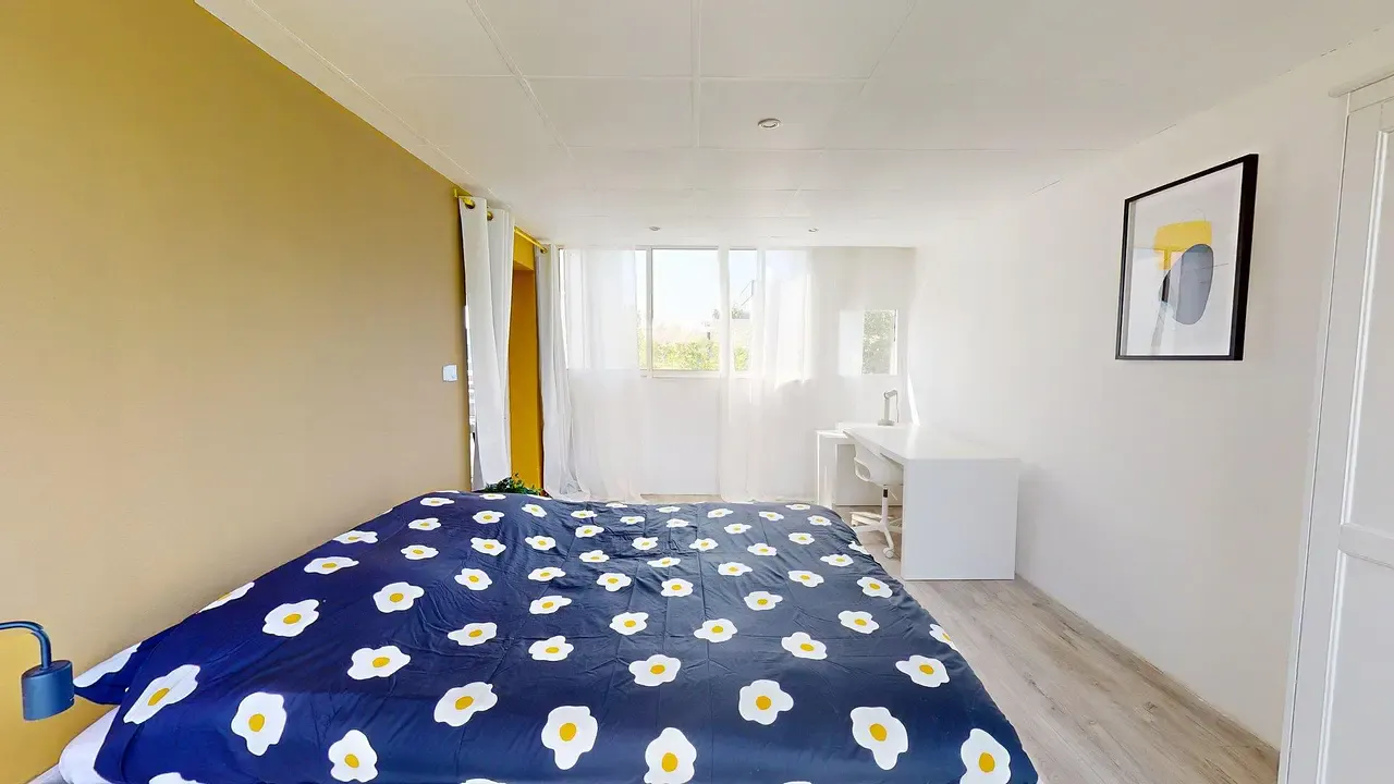 🏡 Colocation 5 chambres – 112m2 – 10 Cours Président John Fitzgerald Kennedy, Rennes Notre agence vous présente cette colocation de 5 chambres dans un spacieux appartement de 112m2, situé au 8ème étage d’un immeuble moderne avec ascenseur. 🔌 Charges au forfait : Internet Fibre, Chauffage, Eau chaude, Électricité, Taxe Ordures Ménagères, Eau courante et Entretien de l’immeuble sont inclus. 🏠 LE LOGEMENT L’appartement offre une pièce de vie lumineuse et chaleureuse, meublée avec un canapé confortable, une table basse, un meuble TV avec écran plat, ainsi qu’un coin repas avec table et chaises. Une baie vitrée apporte une belle luminosité naturelle et donne accès à une loggia. La cuisine séparée, au design moderne, est équipée de tout le nécessaire : Équipements inclus : four, micro-ondes, plaques de cuisson, hotte, évier, réfrigérateur avec compartiment congélateur Deux salles d'eau viennent compléter ce bien. Les WC sont séparés pour plus de confort. 🛏️ LA CHAMBRE Cette chambre traversante dispose d'un lit double, de deux tables de chevet, d'un bureau avec une lampe et une chaise ainsi que d'une armoire. Cette chambre a un accès direct sur le balcon, accessible aussi depuis les chambres 3, 4 et 5. 📍 LE QUARTIER L’appartement est idéalement situé, à proximité immédiate des transports en commun : 🚉 Métro & Bus : accès rapide à la ligne A arrêt JF Kennedy ou Villejean Université, bus 14, 76, et C4 arrêt Villejean Université 🛍️ à moins de 15 minutes à pied : Université Rennes 2, banques, poste, restauration rapide, U Express, Macdonalds 🏙️ Centre-ville facilement accessible, que ce soit en transport ou à pied. Bail individuel à la chambre. Pas de caution solidaire. Chacun est libre de partir quand il veut sans se soucier des autres colocs, dès le moment où il respecte un mois de préavis. Éligible aux APL. Les informations sur les risques auxquels ce bien est exposé sont disponibles sur le site Géorisques : (hidden) Montant estimé des dépenses annuelles d'énergie pour un usage standard : 2106 € par an. Prix moyens des énergies indexés sur l'année 2021,2022,2023 (abonnements compris...