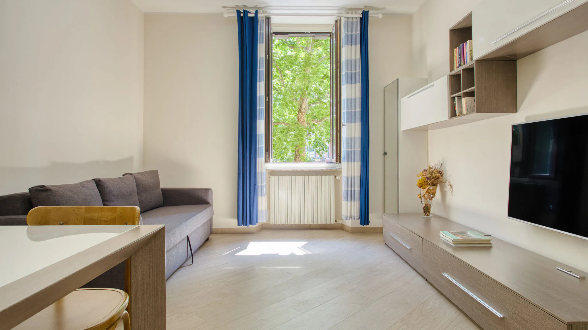 Umbria 27 is an Apartment cosy and functional, perfect for business and leisure stays.The Apartment is located in Milano on the first floor and consists of 1 room . Umbria 27 enjoys a strategic location with a city view . The house is non-smoking, and is equipped with air conditioning, wifi and washing machine. The kitchen is equipped with dishes, tableware and major appliances: oven, microwave and dishwasher.The sleeping area consists of 1 double sofa bed in the living area and 1 bedroom with 1 double bed, can accommodate up to 4 people.The outdoor space consists of the balcony.Umbria 27 also offers: television. RENTAL CONDITION: Rent includes all utilities based on normal use; if you exceed with the usage of gas and electricity, the extras will be deducted from your deposit. Details will be specified in the rental agreement; Internet, wi-fi, water, building expenses and contract registration costs are included in the rental price; Early termination of the contract: after the minimum required stay of one month, you can terminate the contract earlier and without penalties by informing us 21 days before your expected move-out date; We apply a daily contract on 30 days: we calculate the rent in proportion to the number of days of your stay: e.g. December is calculated on 31 days, February on 28 etc etc...; RENTAL AGREEMENT: As per Italian Law, it is mandatory to apply for a valid Italian Tax Code in order to sign the rental agreement. You can apply for one by contacting your local Consulate, or by going to the Agenzia delle Entrate no later than one-week prior check-in. If you can't get one on time a charge will be applied. The rental agreement must be signed prior check-in. Failure to do so will result in the impossibility to enter the apartment. PAYMENTS: In order to complete the booking the following payments must be completed, at least 2 weeks before the check-in date: - the deposit, that we will give you back at the end of your stay within 30 business days after the check-out date; - one-time initial and final cleaning fee (starting from €175) depending on the size of the flat. - for all apartments located in Rome, the cost of the city tax is required at check-in. This is equal to €3,50 per person per night. MINIMUM STAY MILAN ACCOMMODATION 60 nights minimum stay is required for the reservations with check- in between March 18th 2026 and April 28th 2026 included. For bookings with check in within those dates, the first two months of your booking must be paid in advance and won't be refundable. The check out between 17th April and 26th April 2026 included is not allowed...
