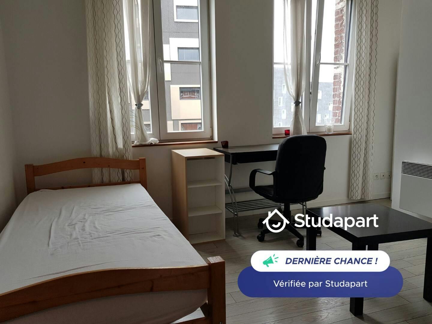 Grande résidence privée étudiants sur le campus de la gare à Roubaix. Un studio ETUDIANT (2-1) au 2eme étage, aménagé avec lit, bureau, armoire penderie, table basse, + salle de bain privée dans le studio (douche, lavabo, toilette, rangement) + un coin cuisine dans le studio avec évier, réfrigérateur, double plaque vitro, micro onde, vaisselle, ... Au rdc, vous avez accès à une grande salle commune de la résidence, ainsi qu'au lave linge. La résidence est située rue de l'avocat à Roubaix, sur le Campus Gare, les grandes écoles sont en face de la résidence : l'ESAAT, l'ENSAIT, IUT C, IMMD et LEA, et à 5mn à pied de Piktura. La gare, le métro et bus sont à 20 mètres. charges (toutes les charges sont comprises : l’électricité, l'eau, le chauffage et internet) Nous demandons la garantie Visale, Garantme ou 2 parents salariés en France. Bail individuel, droit à l'apl. Visite sur rdv après reception de votre dossier, Muriel Updated on 21/08/202...