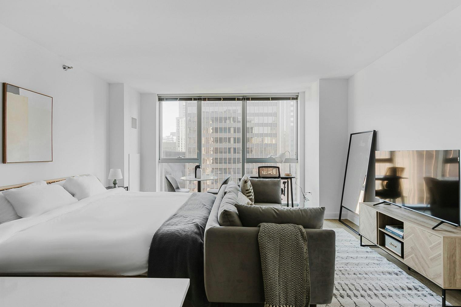 Please, note that the minimum stay for this accommodation is 33 days. Show up and start living from day one in Chicago with this beautiful studio apartment. You’ll love coming home to this thoughtfully furnished, beautifully designed, and fully equipped The Loop home with stunning high floor views over the city. (ID #CHI1182) Designed with you in mind In this apartment, you’ll find a thoughtfully designed space complete with beautiful furniture and a fully equipped kitchen in this studio property. And, thanks to our superior quality mattresses, luxury linens, and towels, you can relax knowing you’ll always feel comfortably at home. When you’re ready for some fun, you can take in the Chicago vibes or bring the entertainment to you with the premium wireless speaker or smart TV. This apartment also offers in-apartment laundry. Sleeping arrangements King Bed, 70.8in/180cm Amenities Building amenities unique to this studio apartment include an on-site: - BBQ Area - Doorman - Dryer - Elevator - Game room - Swimming pool - Washing machine - Lounge - Pets allowed Arrival and ongoing support Full Maintenance and Technical Support / cleaning requests at a click of a button. Ideally Located This furnished rental is situated in the most dynamic and convenient place to live in Chicago, The Loop. With its endless shopping, fine dining, stunning park, river and lake views, and entertainment opportunities, everything is possible at a moment’s notice. The area is a cultural getaway for professionals and students, who can combine work with pleasure. Discover landmark buildings like the Willis Tower and The Art Institute of Chicago. Millenium Park, near Lake Michigan, is always worth a visit. The Loop is within reach of accessible transportation, offering non-stop public transit, buses, and taxis. Union Station is approximately a 10 minute train ride. Other things to note Building amenities may have an extra cost. This apartment has flexible lease options, allowing you to book it for one month, a year, or more. Pets are welcome, though weight limits and breed restrictions apply and may incur fees. Also note - This apartment's central location means it can be noisy at times - This apartment is located near a railway, so expect to hear moderate noise when trains pass Completion of the Background check via a link is mandatory after the booking confirmation. All occupants, and anyone booking on an occupant's behalf, will be subject to a background check, which will include a criminal and credit history to the extent permitted by law. United States citizens, U.S. permanent residents, and non U.S. citizens with work visas must provide a social security number to complete the background check. Should guests not meet requirements or decide not to complete these screenings, the reservation must be cancelled by guests. In case of students, proof of University enrollment and a parents screening are mandatory for the confirmation of a booking...