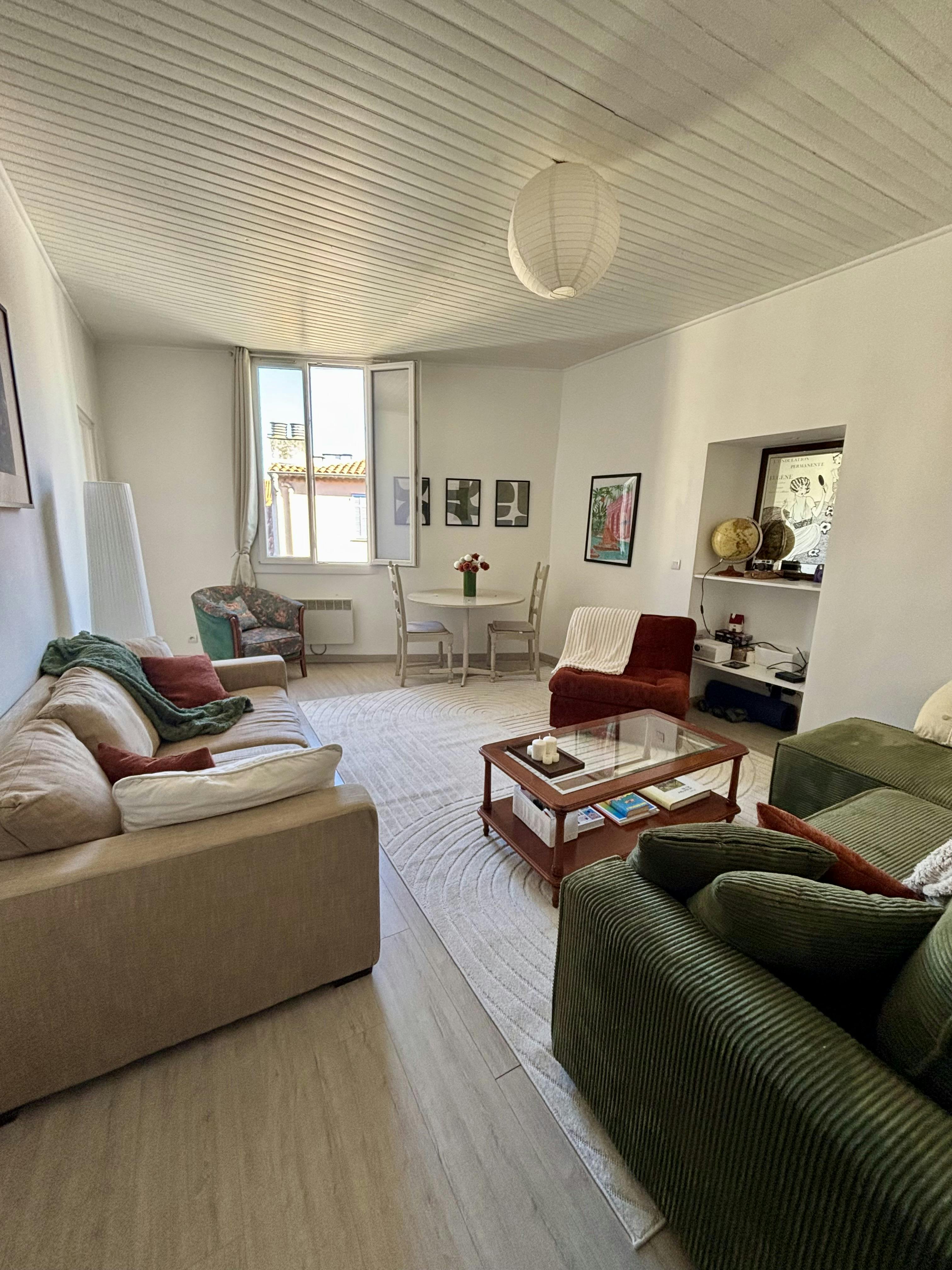 Beau 2 pièces lumineux au cœur du Vieux‐Nice, au 3e étage sans ascenseur, avec vue sur les toits. Chambre séparée, salon spacieux avec deux canapés‐lits, cuisine équipée, Wi‐Fi rapide et espace de travail. Rue calme, à 5 min de la plage, 3 min du tram et 2 min d’un supermarché. Idéal pour un séjour long, en solo ou en couple...