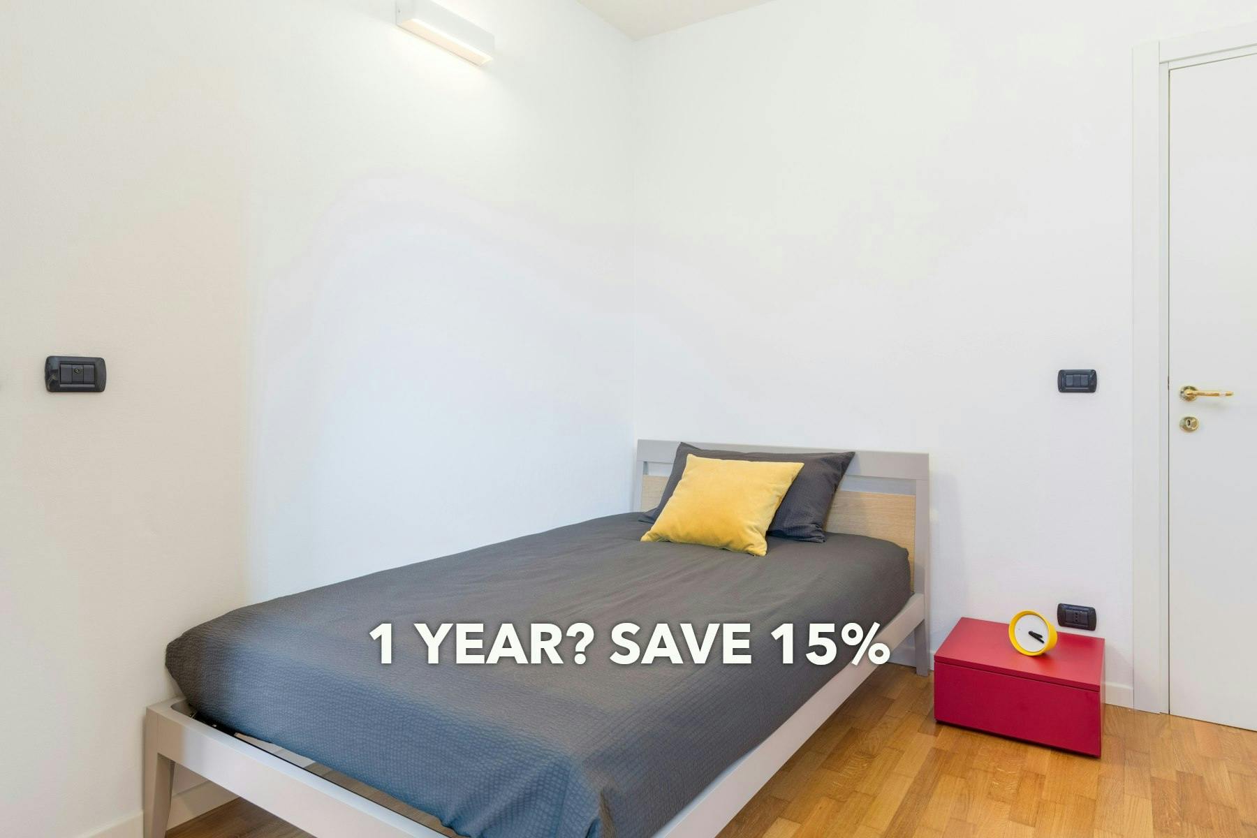 There are no words for the suite of this apartment! At our company, we love long-term stays! Enjoy significant discounts when you stay with us for 12 months. If you need to stay for less than 12 months but find someone to take over for the remaining period, both of you will benefit from our substantial discounts. Ask for a quote today and start saving! Room: PHO. ROOM Apartments - comfortable single rooms and common spaces to live together! Spacious and elegantly furnished room, designed to ensure comfort and functionality. The queen-size bed, equipped with an orthopedic mattress, ensures a regenerating and quality rest. The 150 cm wide desk allows you to study in comfort, having all the necessary space available for notebooks, books and open laptops. The robust and ergonomic chair, characterized by a unique design, is designed to spend long hours of study without getting tired. The three-door wardrobe, enriched by a practical chest of drawers, is the ideal solution for keeping your room always tidy and organised. ? Apartment: This PHO. ROOM apartment, just like its 5 rooms, was designed specifically with the needs of those who live there in mind, with the aim of creating a functional environment, ideal for studying or working and at the same time for socializing. The living area encourages co-living and co-studying, a precious opportunity for exchange to attend university profitably, while the single rooms offer all the space and privacy necessary for those who want to be alone. The structure has: Cooking Area of 16 m2 with induction hob, oven, dishwasher and 40'' TV. Wifi 2 bathrooms laundry with washer dryer large terrace accessible from every room Bike parking Parking space Concierge The estimated expenses refer to a virtuous consumption profile. We're a bit old-fashioned and still prefer deposits like the good old days, so we require the deposit payment to be made to the property manager's bank account immediately after completing the reservation process on HousingAnywhere...