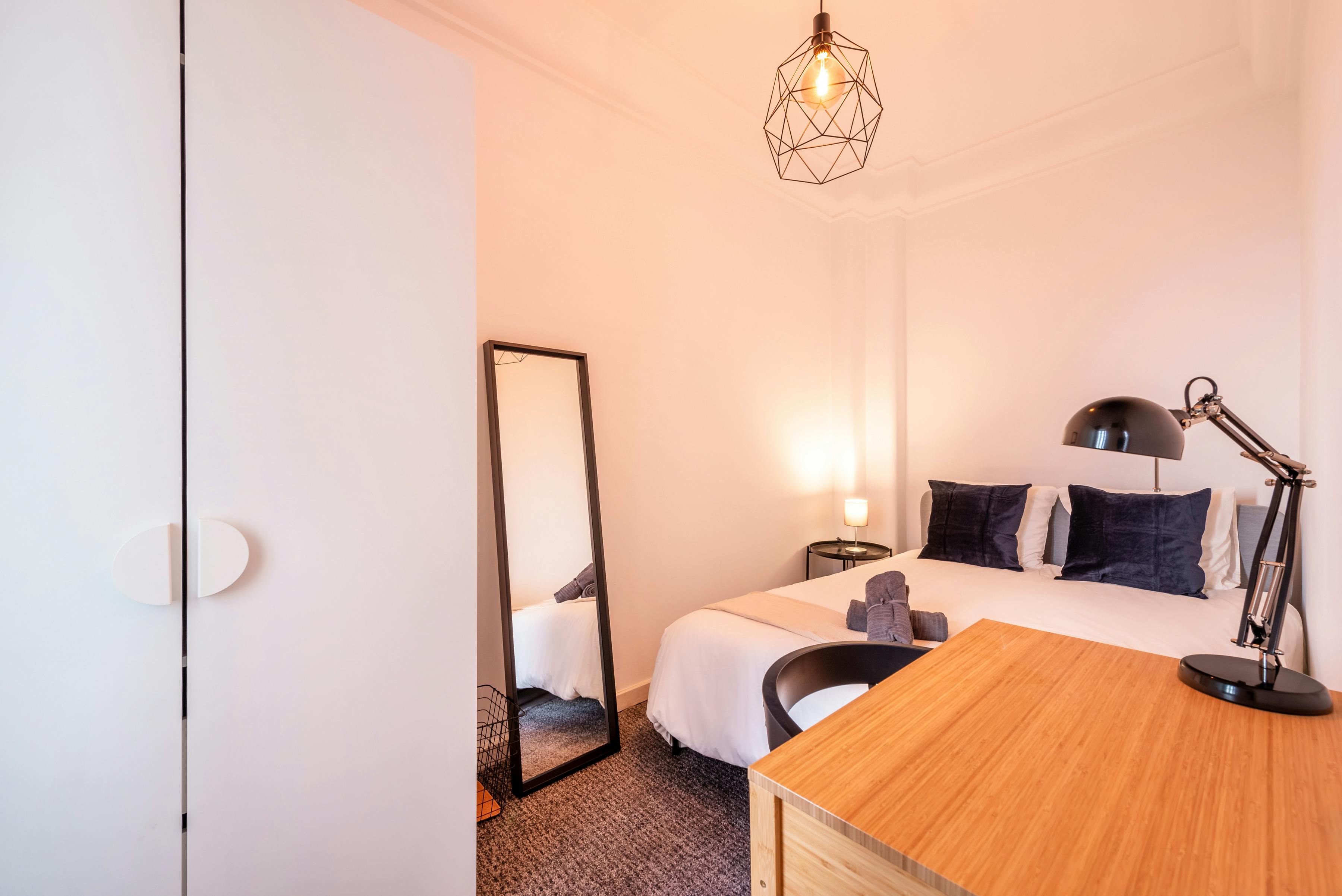 ROOM This cozy Lisbon bedroom has everything you need for a comfortable daily life. Your private bedroom includes a cozy bed, a desk to work or study from home, and a wardrobe. APARTMENT This spacious apartment offers the ideal location to enjoy your Lisbon life. In addition to your private bedroom, youll have access to several shared areas, including a fully equipped kitchen and two bathrooms.This spacious apartment offers the ideal location to enjoy your Lisbon life. In addition to your private bedroom, youll have access to several shared areas, including a fully equipped kitchen and two bathrooms. PROPERTY The building is located in one of Lisbons best and most central areas. Youll be just a few steps away from Marquês do Pombal, easily connecting you to other parts of the city, and Parque Eduardo VII....