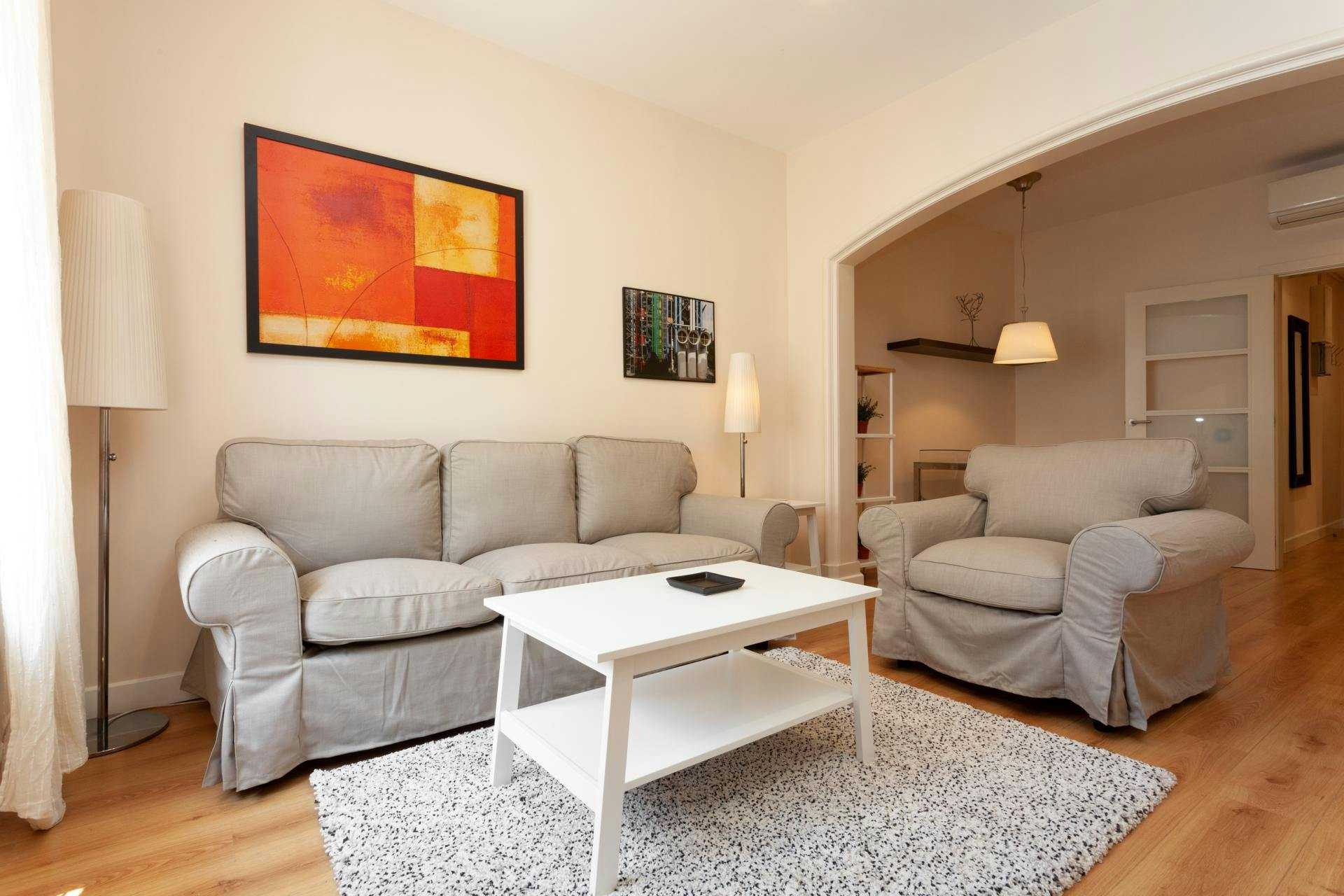 MONTHLY RENTAL Nice flat in a beautiful building in the district of Sarrià-Sant Gervasi, it is available with (hidden) for monthly rental. It includes a beautiful living-dining room with a three-seater sofa, a matching armchair and TV. The kitchen is independent, modern and equipped with everything you need. The two bedrooms are spacious and have cupboards, the bathroom has a shower, there is also has a laundry room. The service includes air conditioning and internet connection, this accommodation is ideal for a family who wants a home for less than a year in the Catalan capital. The Bonanova district is a privileged area, with many embassies located here, plus restaurants and luxury boutiques. The neighbourhood benefits green spaces like the garden of Turó del Putxet, and has gyms which offer various activities like yoga, Pilates, CrossFit or Martial Arts. You can also admire the superb buildings built at the beginning of the 20th century by the great Barcelona families, real masterpieces! The building is located in a very quiet, residential area, but within a few minutes walk you can go out in the evening and get to numerous restaurants and bars, there are also interesting bookstores and art galleries in the surroundings to browse and enjoy. The area is very well connected to the rest of the city by bus. ADMINISTRATION FEE: 1 month's rent + 21% VAT LOCAL TAXES (I.T.P.): 0.5% of the total reservation (Monthly cost calculated as "other" in the Rent summary. The total amount will be collected before the check-in) BOOKING PROCESS: After the reservation is confirmed, you will be required to pay the remaining payments before the handover of the keys. EARLY-BOOKING POLICY (requests 2 months in advance) If you are planning to book an occupied apartment more than 2 months in advance, we cannot confirm the availability yet (The current tenants have the right to extend their stay). Please, get in contact with us 2 months before your move-in date. NO DISCOUNTS POSSIBLE BOOKING PROCESS: After the reservation is confirmed, you will be required to pay the remaining payments directly to the advertiser before the handover of the keys...